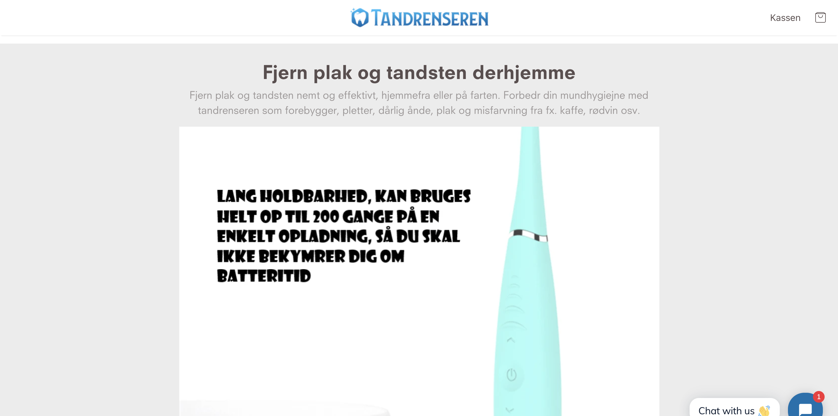 Vi sælger en simpel tandrenser som har været utrolig populær i udlandet og jeg har nu bragt den til Danmark. Den sælger super godt og er meget efterspurgt.