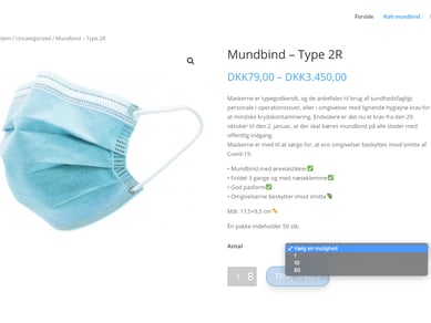 Køreklar og konventeringsvenlig, optimeret webshop som sælger mundbind.