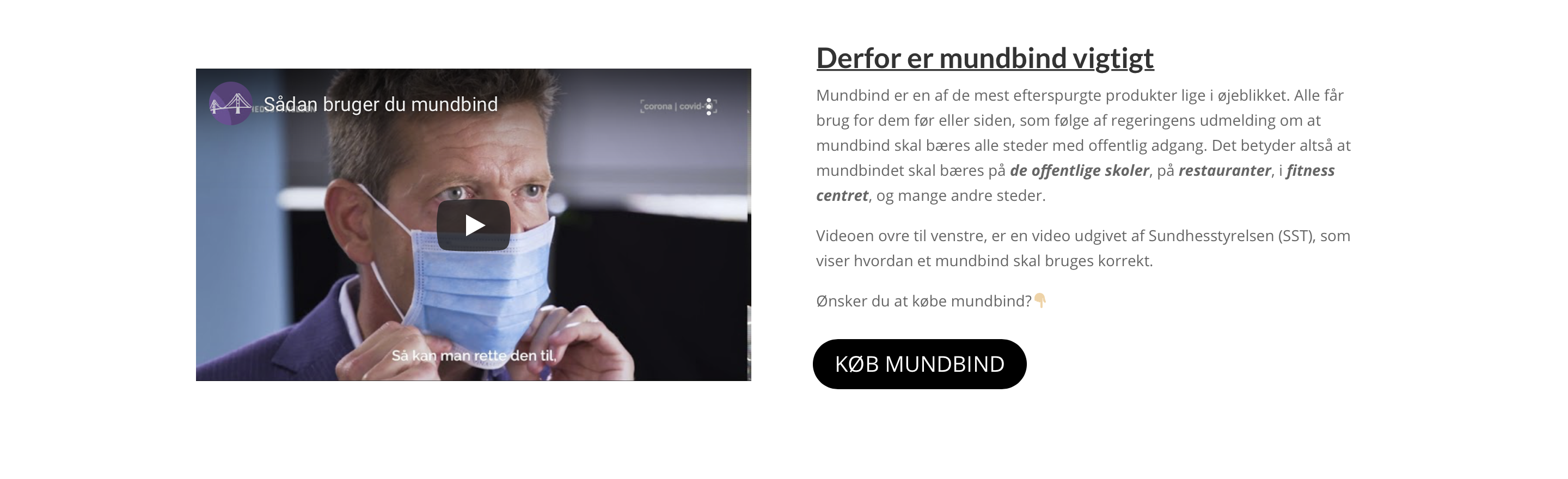 Produktet kræver vist ikke den lange beskrivelse. Alle ved efterhånden hvad mundbind er, og hvad de gør godt for. Alle danskere har på sigt brug for et, og det er derfor oplagt for dem at købe det online fremfor i de fysiske butikker.
