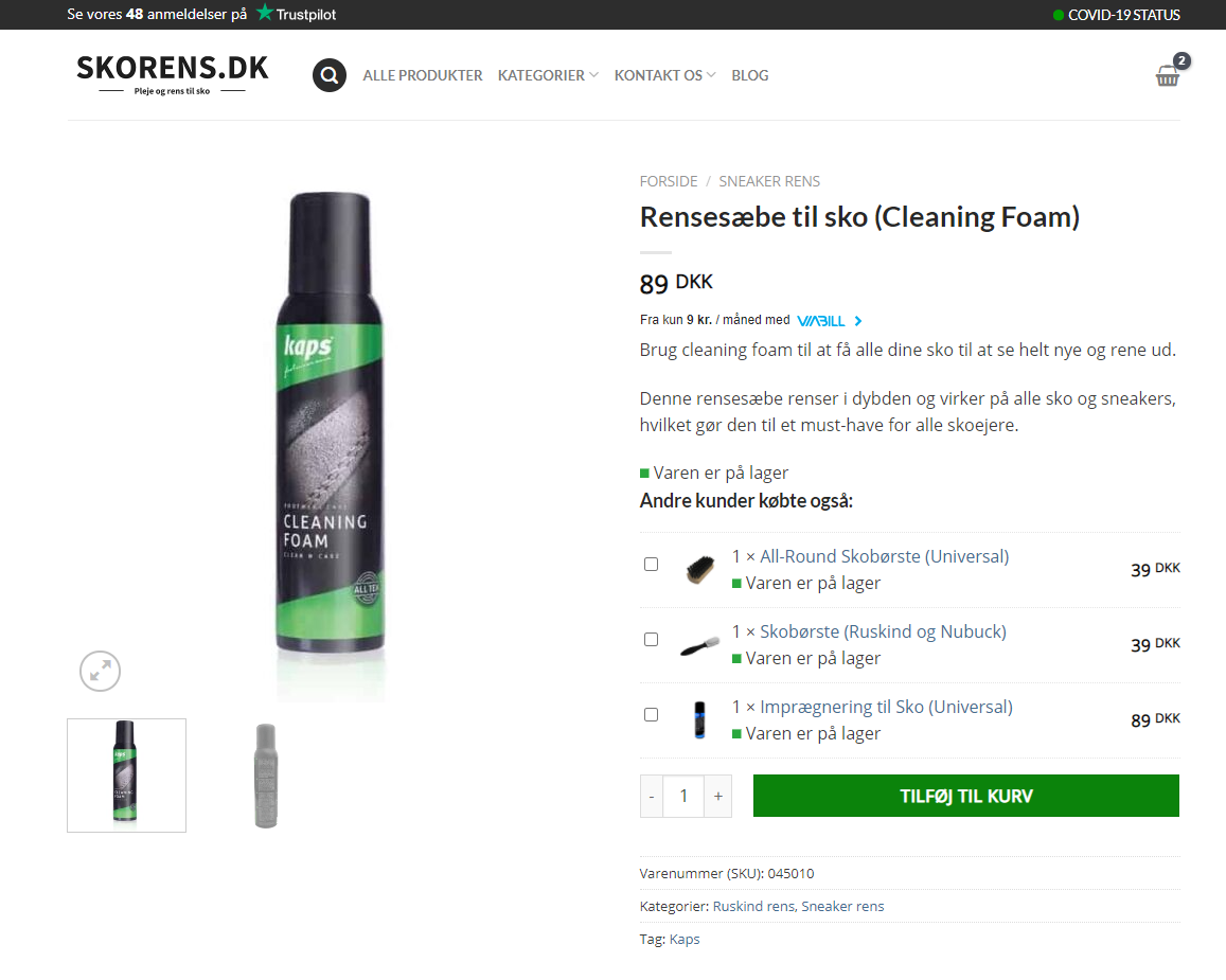 Skorens.dk har en meget professionel hjemmeside, som konverterer rigtigt godt. Den er nem at navigere i og produkterne er sat op med velskrevne produktbeskrivelser. Derudover er der indarbejdet up-sells, som sørger for at kunden ofte køber flere produkter.