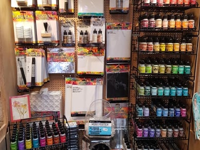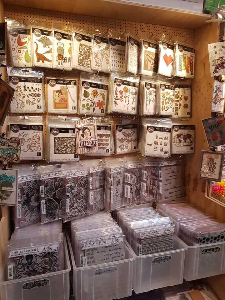 Varelageret består af materialer indenfor kortfremstilling og scrapbooking, planner, æsker og mix media.