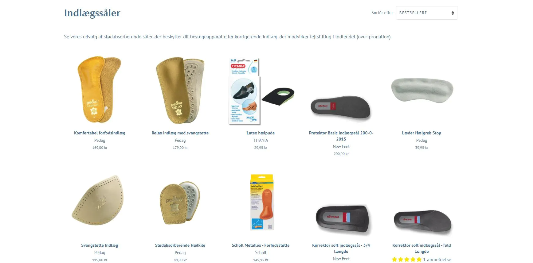 Siden sælger primært sundt fodtøj særlig egnet problematiske fødder og fodpleje produkter (cremer, file, fodbad, aflastninger, indlægssåler osv.)