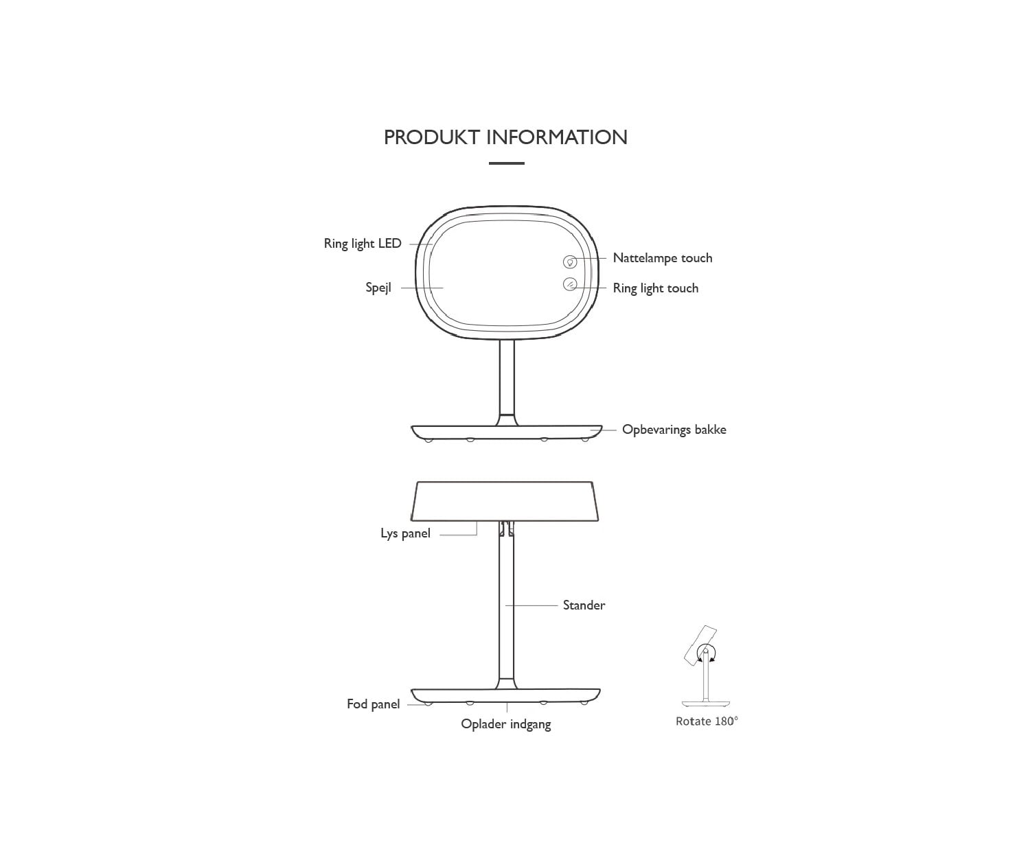 Vores nuværende produkt er et makeup spejl der er stilrent og i skandinavisk design (passer perfekt ind i den danske piges hjem). Derudover har vi "Exclusive distribution agreements" med vores leverandør til det danske marked og de producere en lang række af andre lignende beauty accessories og spejle.