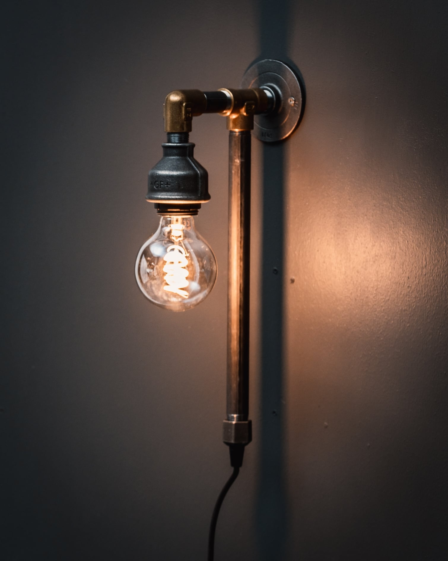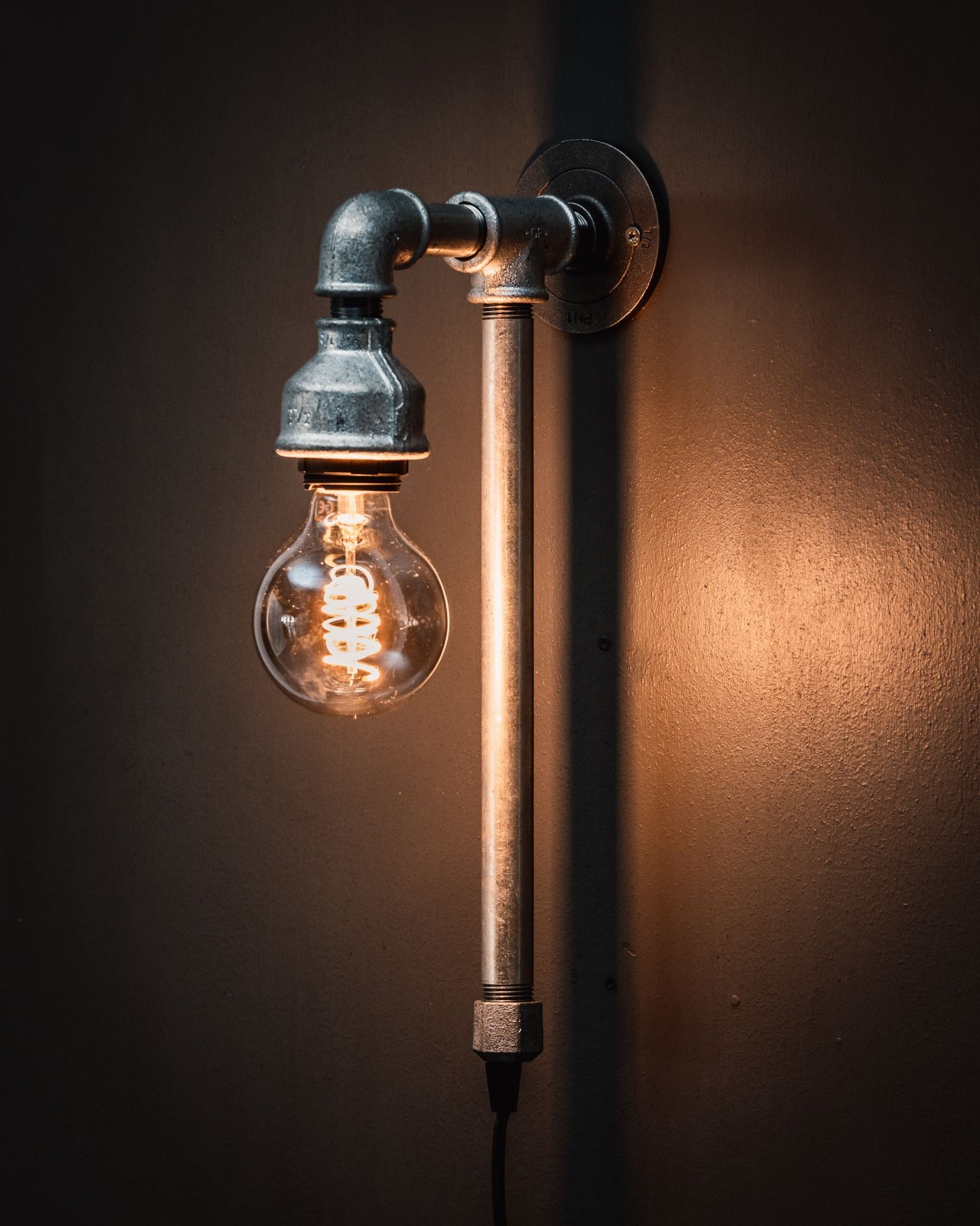Produktet er lamper lavet i vandrør, lamperne bliver indkøbt i forhandler og bliver selv samlet i flotte designs.