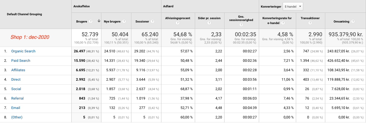 Vi har to godt profilerede webshops, som begge driver meget salg igennem Google Ads og SEO primært. Der er desuden mindre annoncering via Facebook - og løbende mails til de ca. 8.000 abonnenter af nyhedsbrevene.
