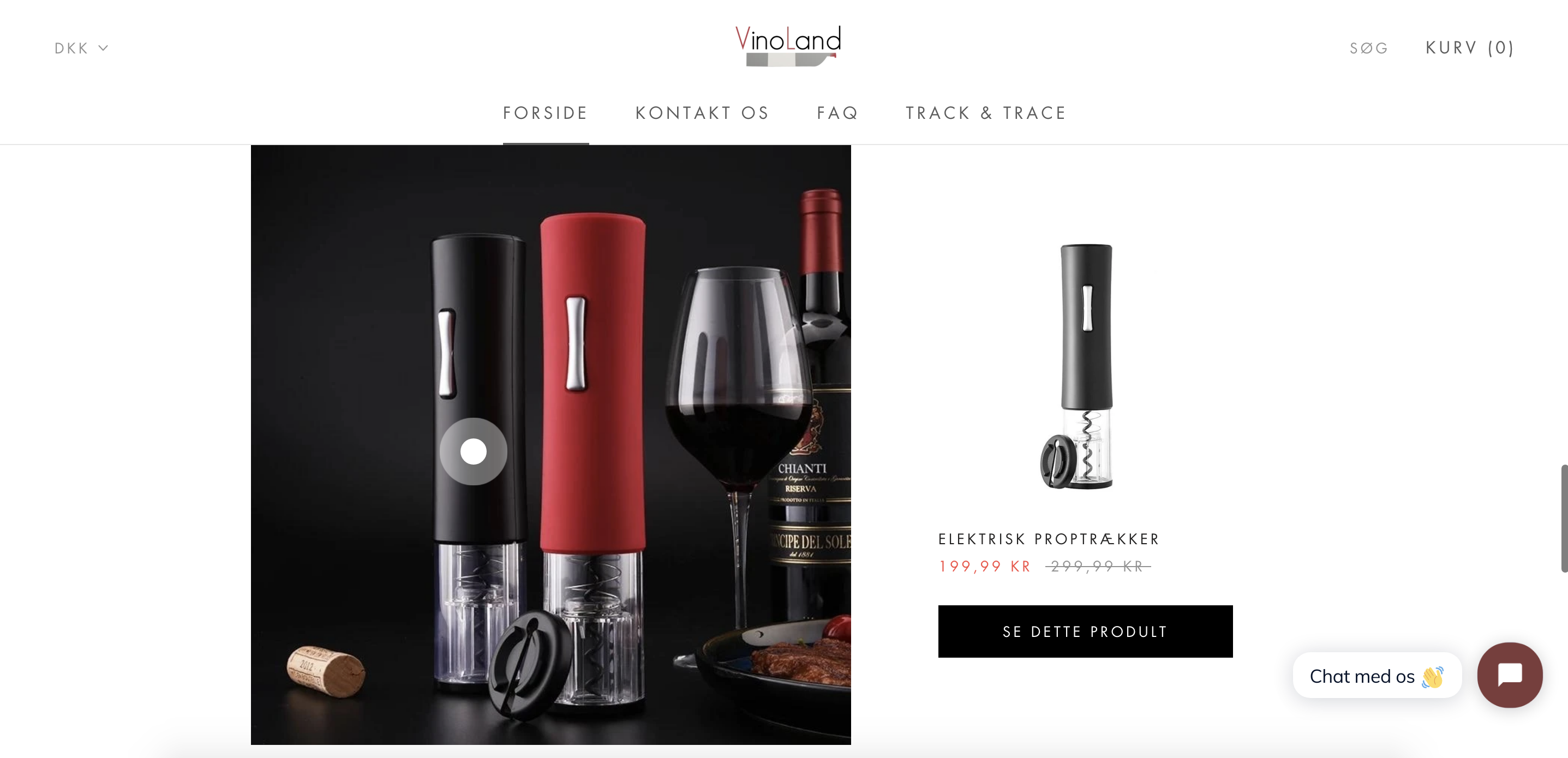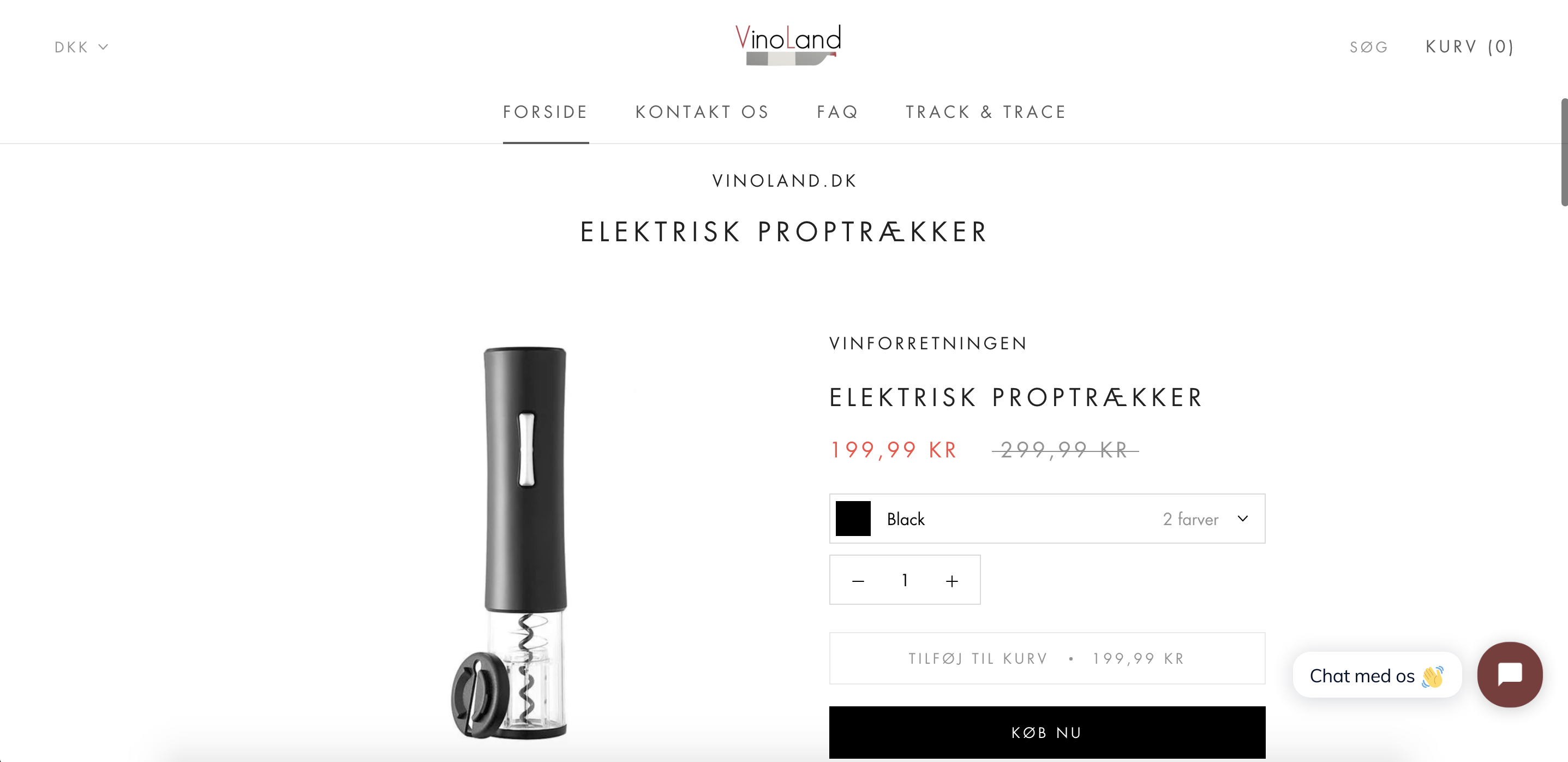 VinoLand.dk er en helt ny webshop som sælger en elektrisk proptrækker. Hvilket der er kæmpe marked for i Danmark, vi har lige nu ikke fundet nogle konkurrent som kan matche os på prisen på produktet.