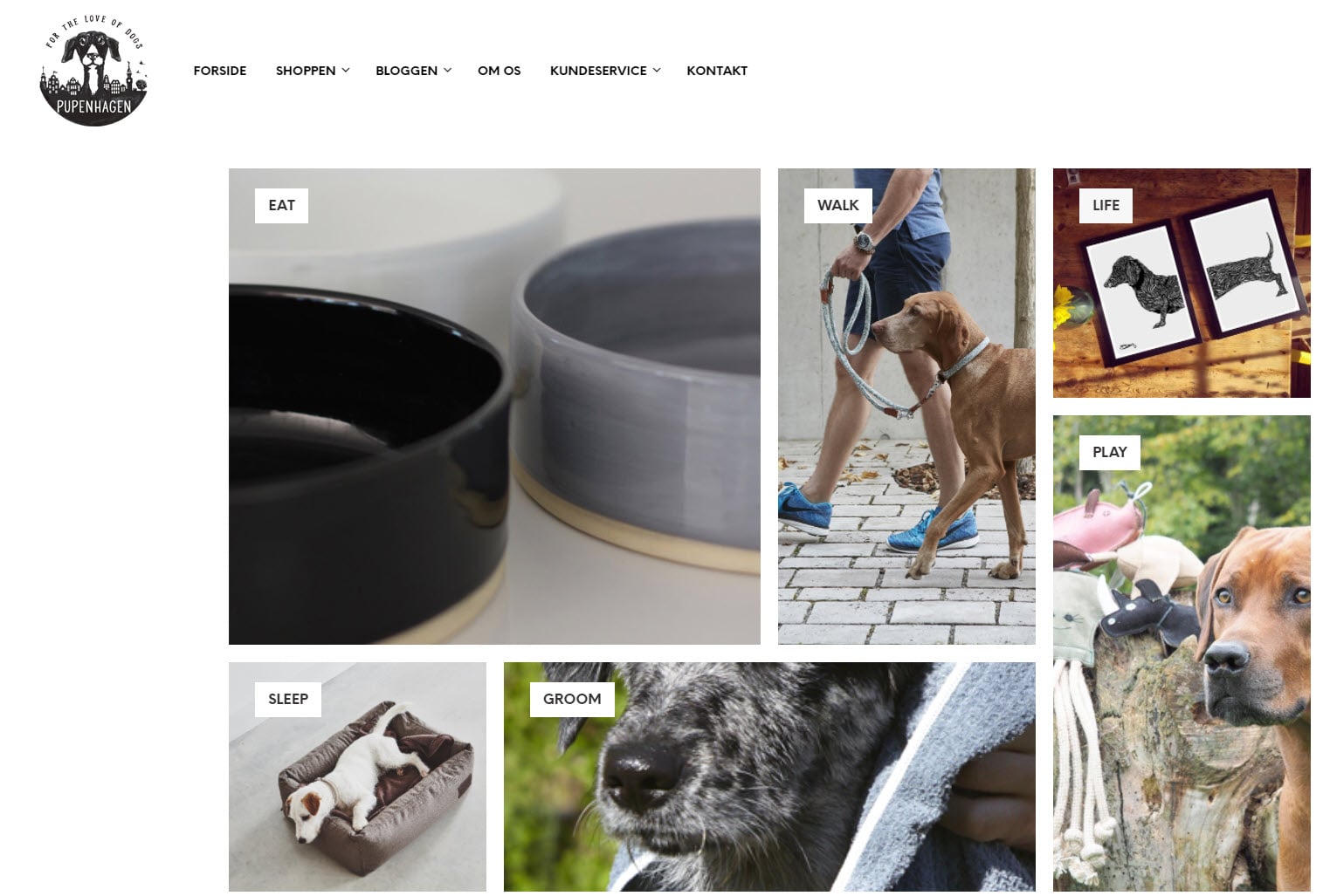 Vi har selv designet og udviklet sitet på basis af Wordpress og har fokuseret på det æstetiske og visuelle. Navnet Pupenhagen er en sammentrækning af 'pups of Copenhagen' - pups er slang for hund. Vores egne hunde har ofte stået modeller og har været omdrejningspunktet for grundfortællingen om virksomhedens DNA. Vi har vægtet kundeservice meget højt og kundens ord er altid lov. Det giver høj trovværdighed og kunder, der vender tilbage