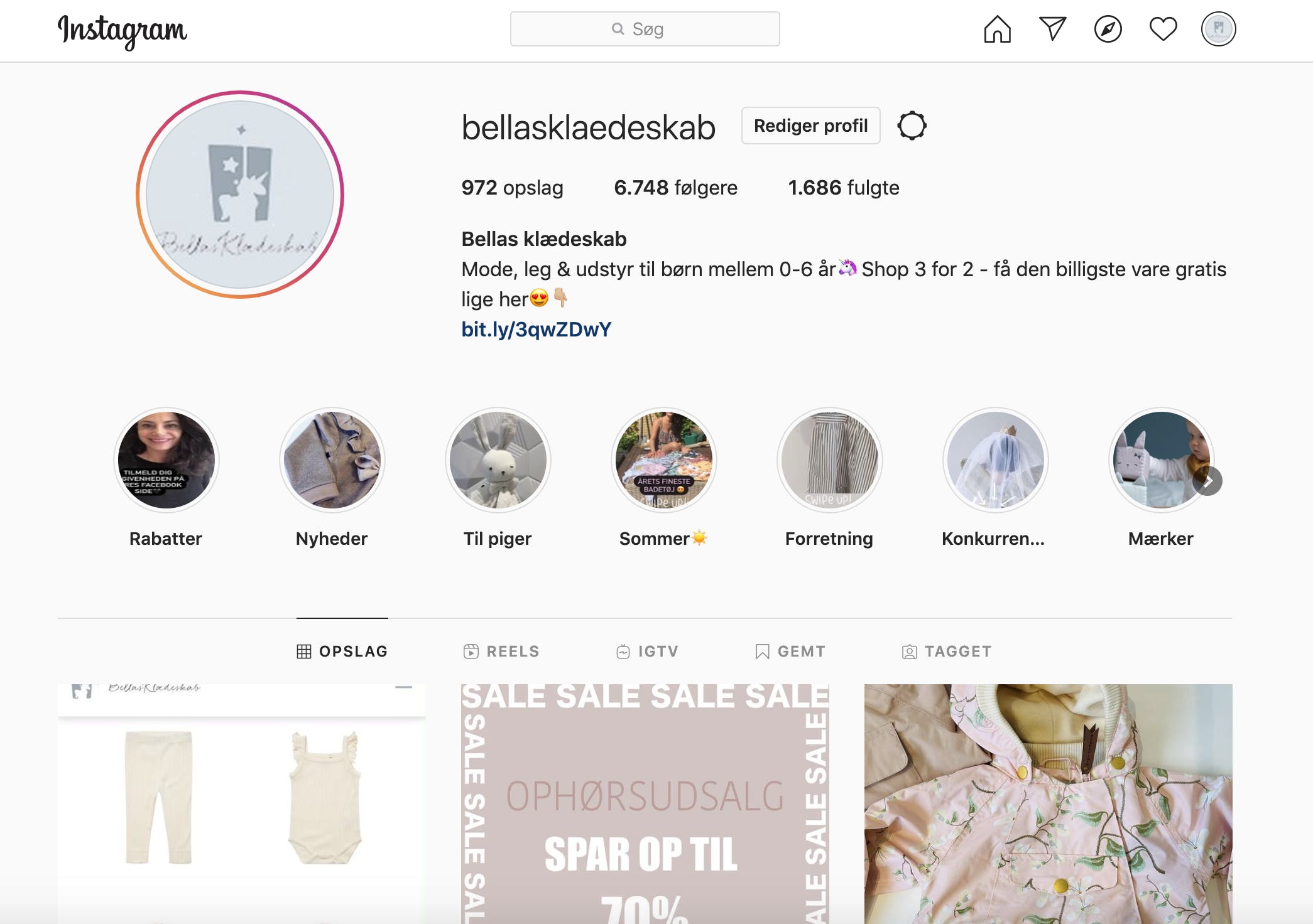 Med i købet får du en facebook og instagramside med henholdvist 7091 følgere og 6748 følgere.