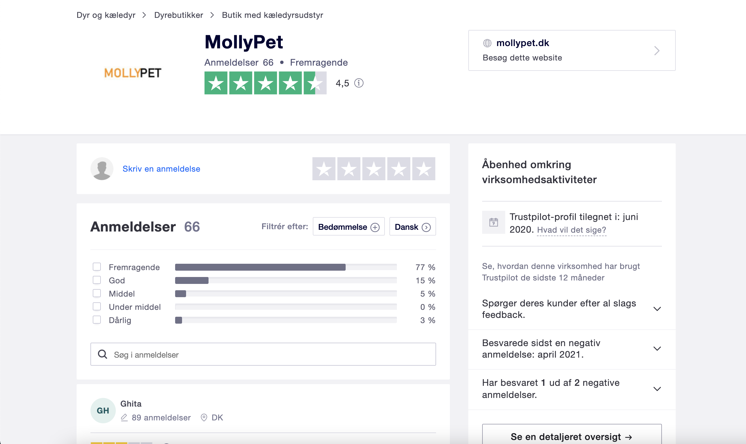 Der er trustpilot konti med, hvor foderbasker og mollypet får topkarakterer