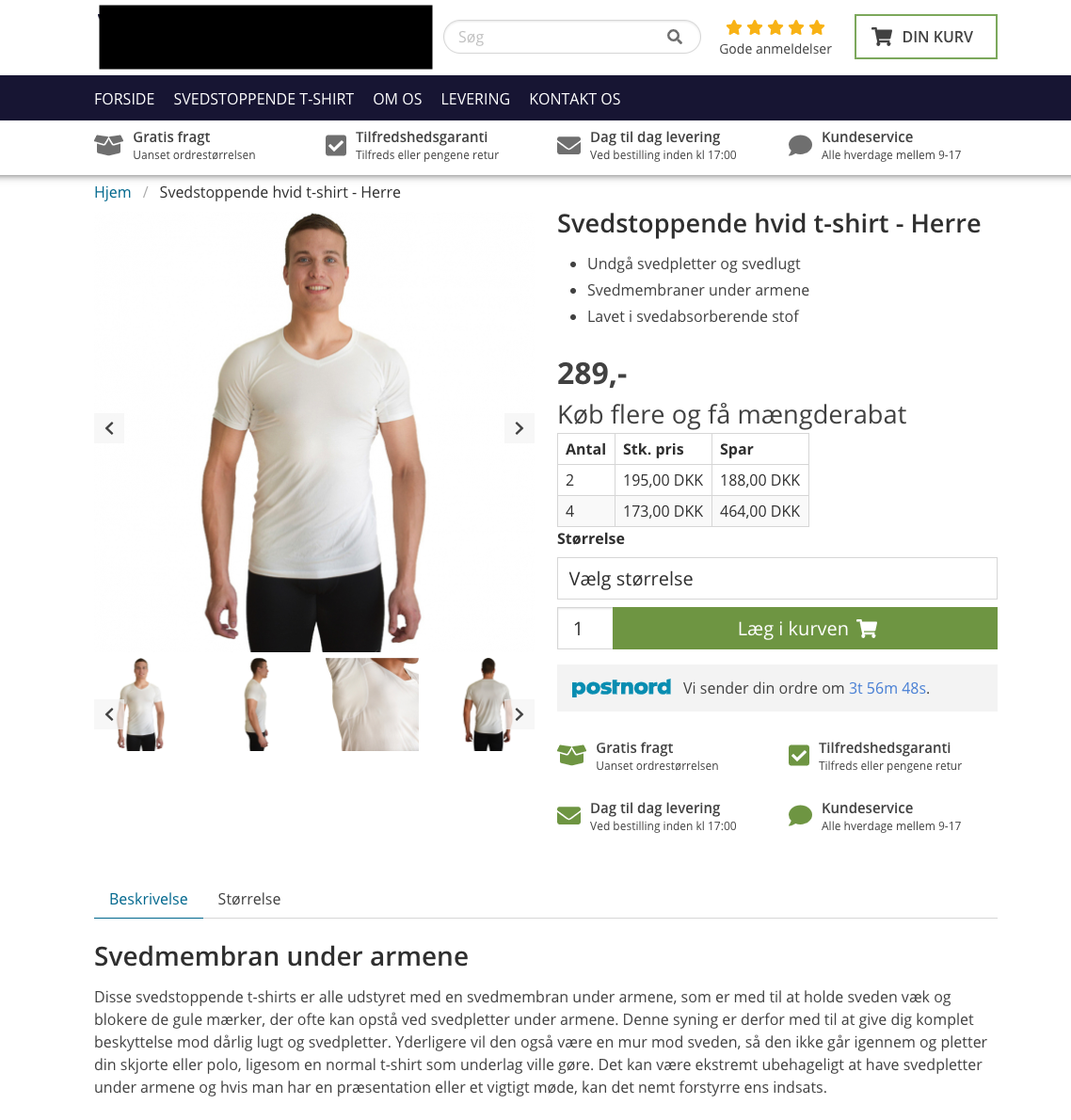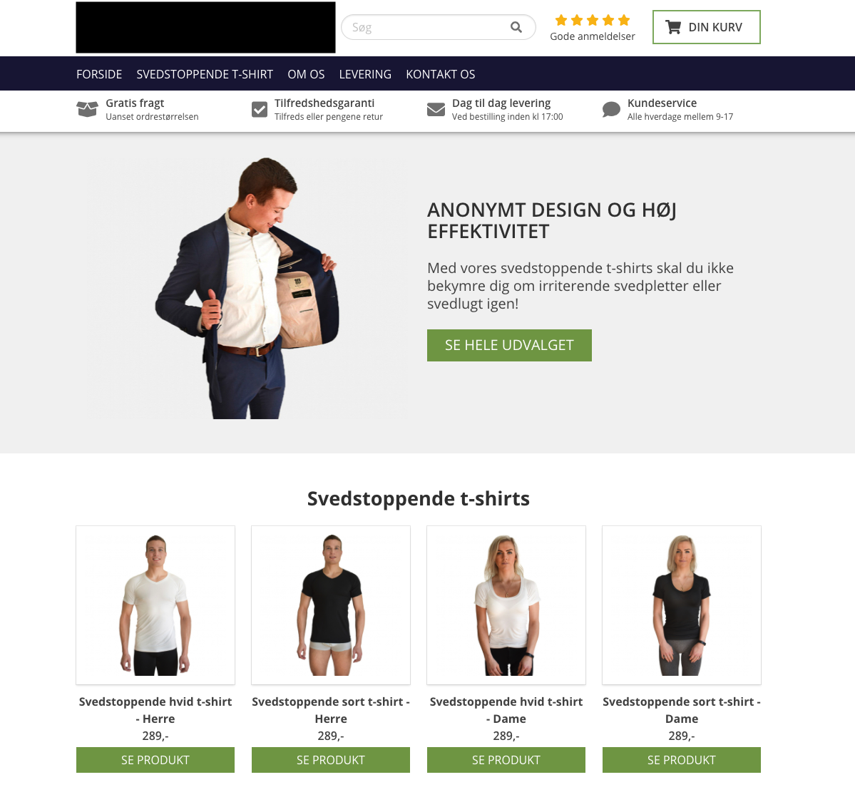 Webshop med svedstoppende t-shirts - Færdigudviklet koncept