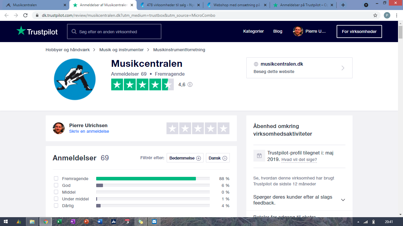 Musikforretningskoncept/Webshop med FB side, Youtube kanal og flot status på Trustpilot