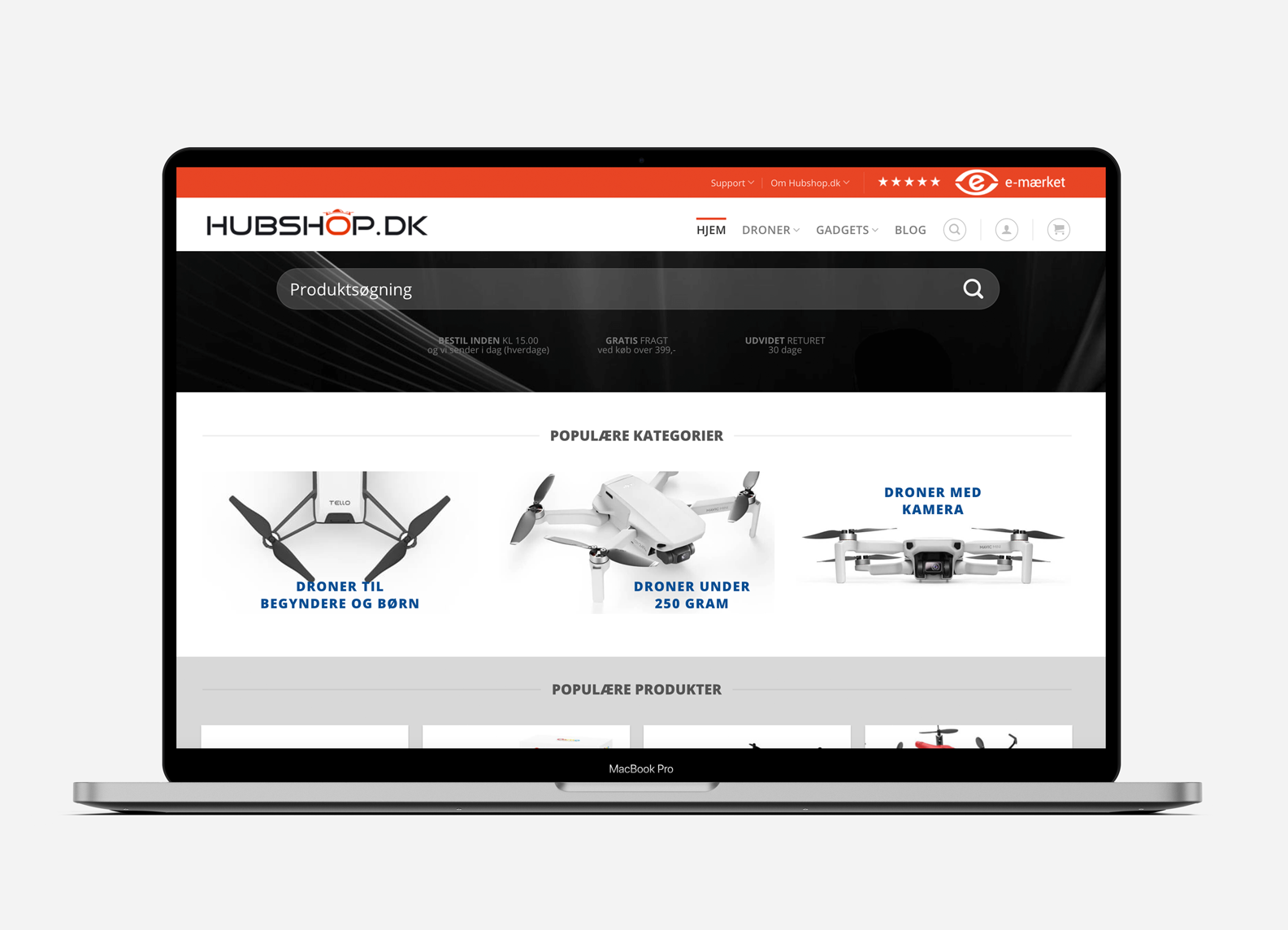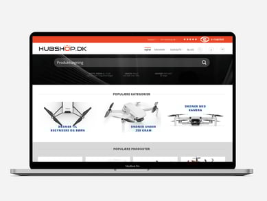 Webshop med droner og andre gadgets. Fuld integration med lagerhotel betyder minimum arbejdsindsats og gode muligheder for skalering.