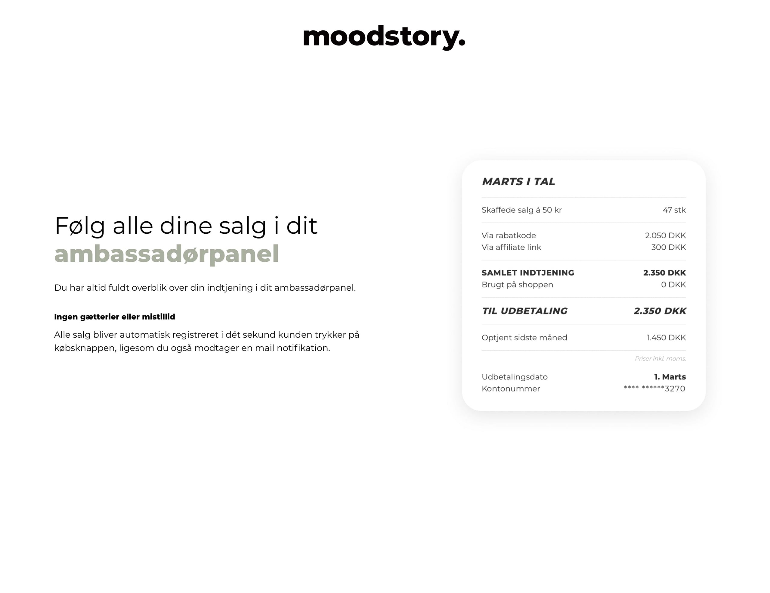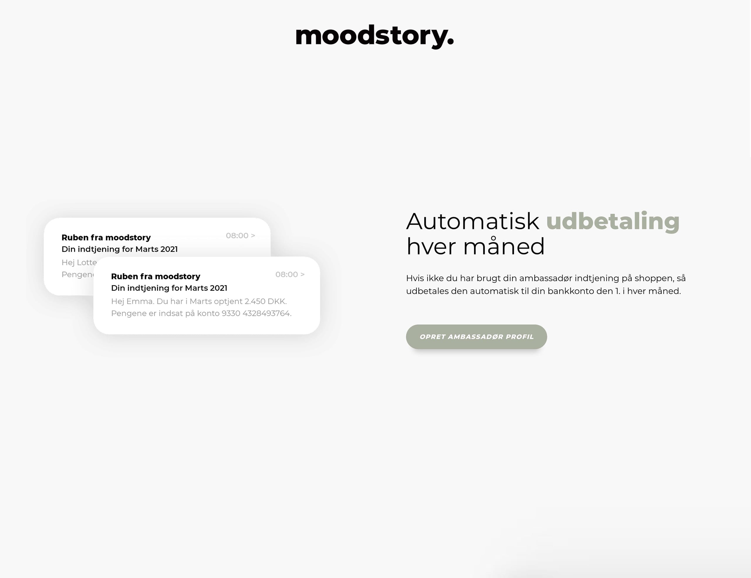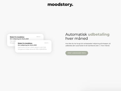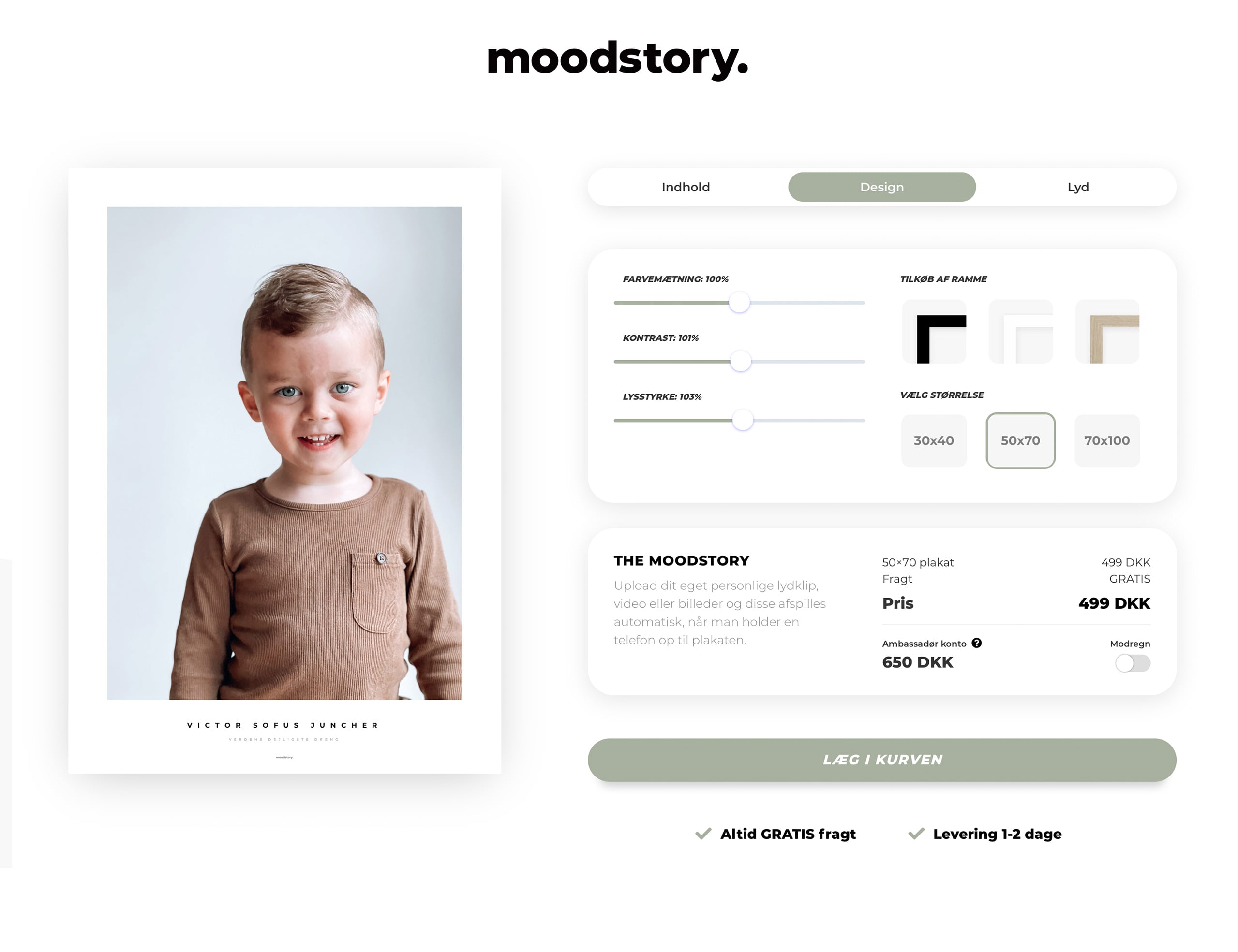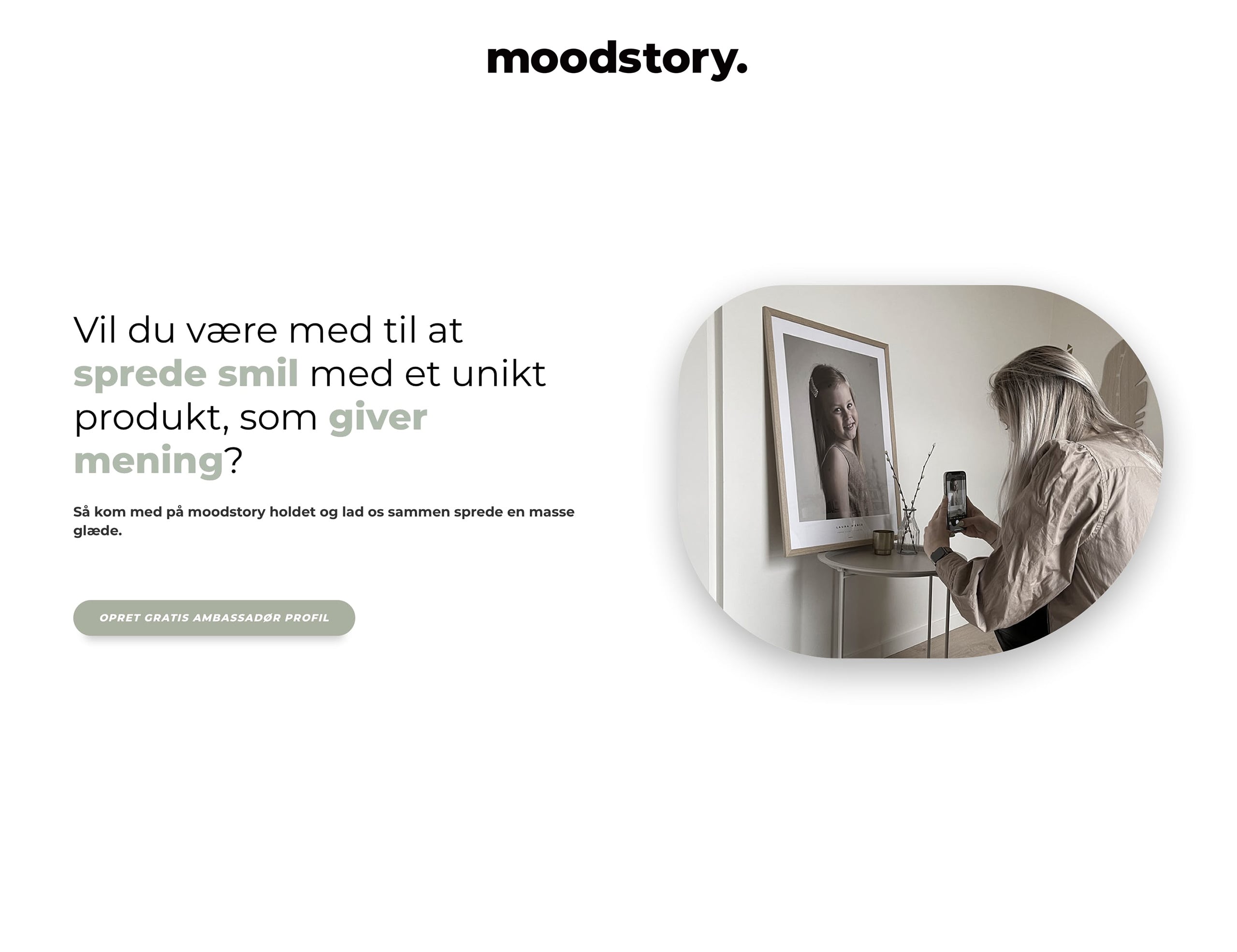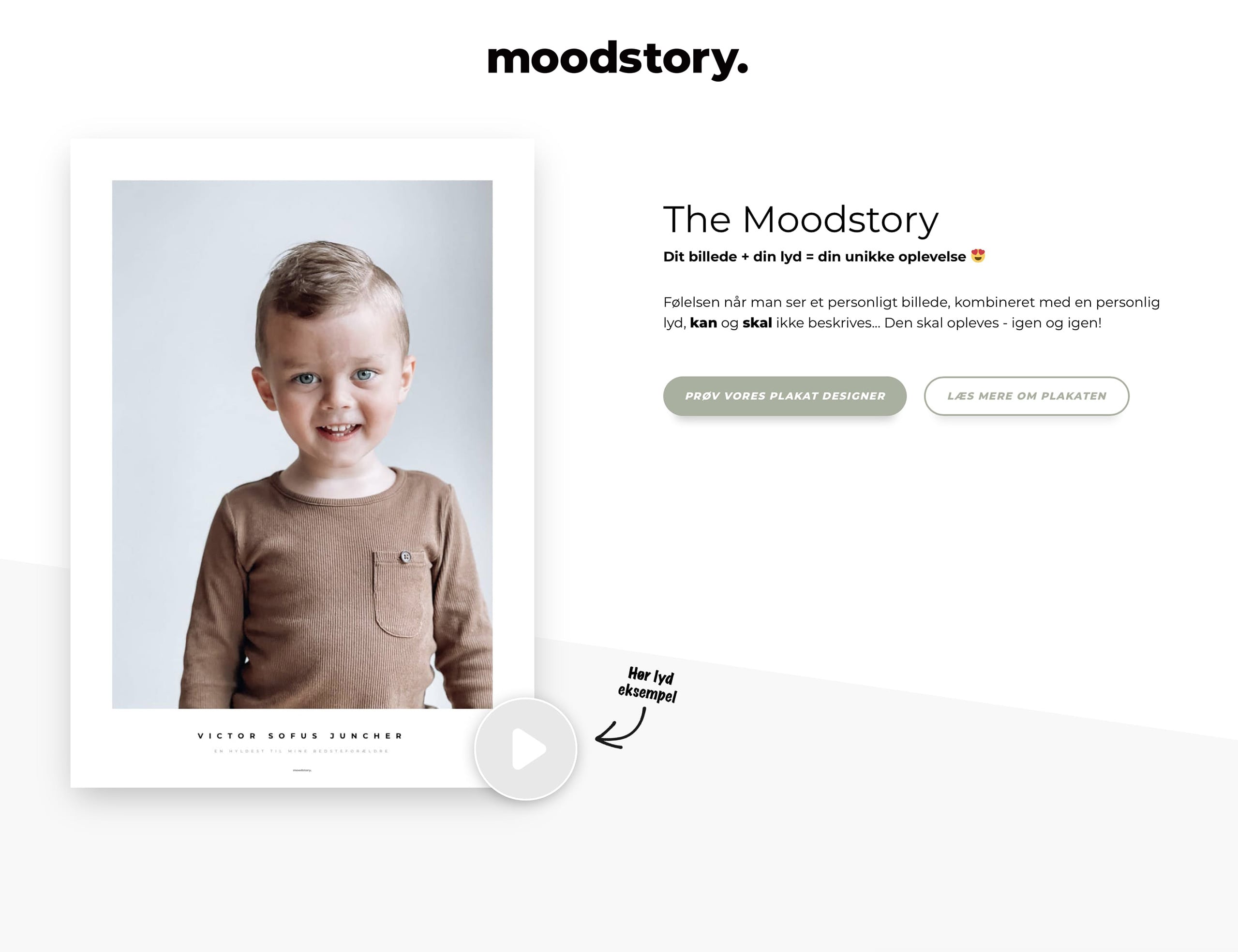 Moodstory.dk er en specialudviklet webshop / influence-platform, hvor kunden nemt kan designe sine egne plakater med lyd, video eller billeder, som automatisk afspilles, når der holdes en tlf op til plakaten via NFC (Near Field Communication) teknologien.