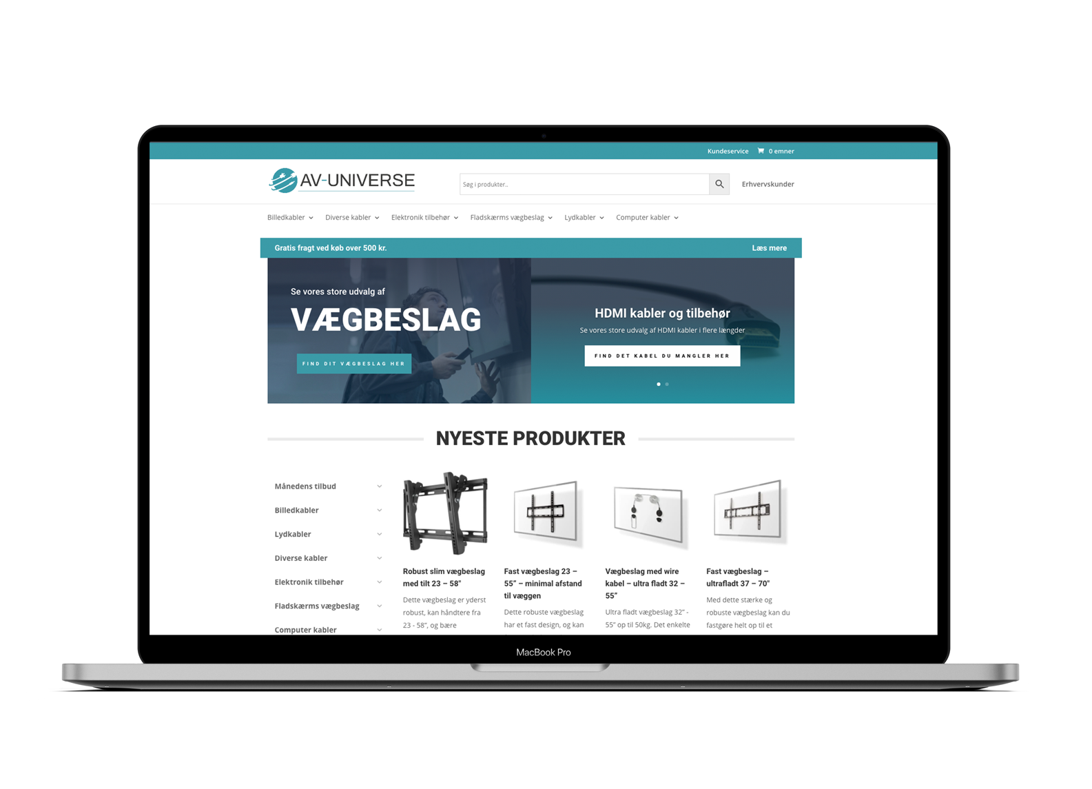 Hos AV-Universe.dk finder du et prisstærkt sortiment af AV kabler, TV-beslag og andet elektronisk tilbehør af høj kvalitet, fra de nogle af de bedste brands i markedet. AV-universe.dk står som et køreklar set up, samt tilhørende varelagere som er handlet ind til skarpe indkøbspriser hvilket gør det muligt for webshoppen at være konkurrencedygtige i markedet.