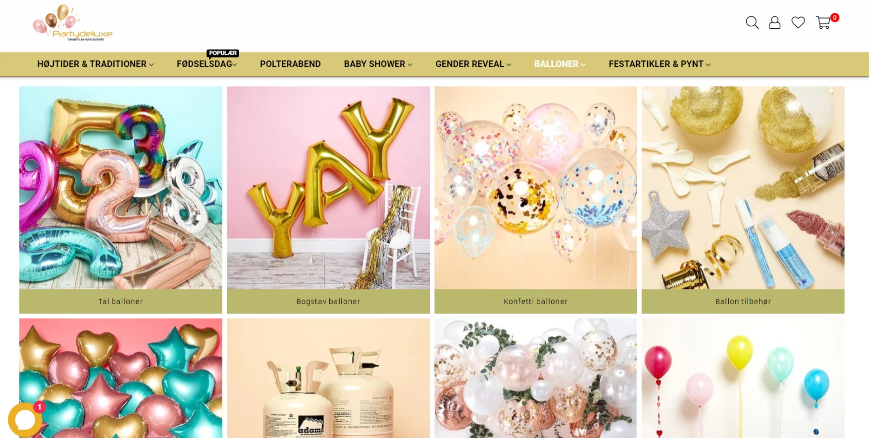 Vi sælger forskellige festartikler så som balloner, temaer til børne fødselsdag, dekorationer til fester, og mange andre detaljer til fester.