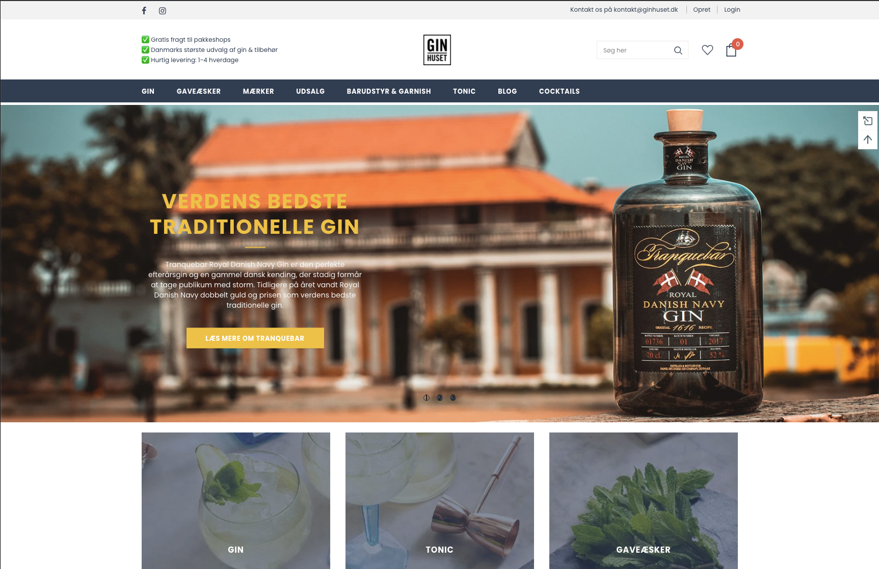 Website og webshop er opbygget i Shopify og er integreret med Shipmondo som fragthåndtering og GLS som fragtaftale. Dette giver en webshop, der er udviklet i markedets stærkeste platform, og med en stabil fragtaftale som giver sikkerhed for fremtiden. Udover salg af produkter, dækker webshoppen også over blogindlæg, produktanmeldelser, cocktailopskrifter og oprettelse af egne sider (f.eks. sider om ginsmagning). Det er nemt og bekvemt at oprette og redigere produkter, oprette og behandle ordrer, oprette egne sider, se analyser og statistik på sit salg, samt ændre på webshoppens struktur. Webshoppen er desuden allerede integreret med diverse konverteringsoptimerende elementer. Webshoppen er implementeret med både de mest relevante værktøjer så som Google Analytics, Google Search Console, Google Tag Manager og Facebook Pixel.