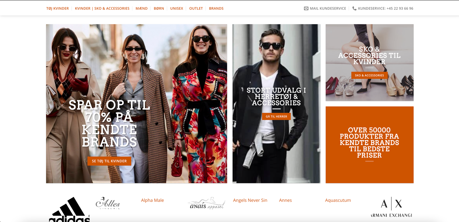 Total køreklar webshop med kendte modebrands såsom Gucci, Armani, Prada, Nike, Puma, Lacoste og mange mange flere. Der er ca. 50.000 produkter på siden. Alle varer sendes direkte til slutbrugeren fra virksomheder i Europa.