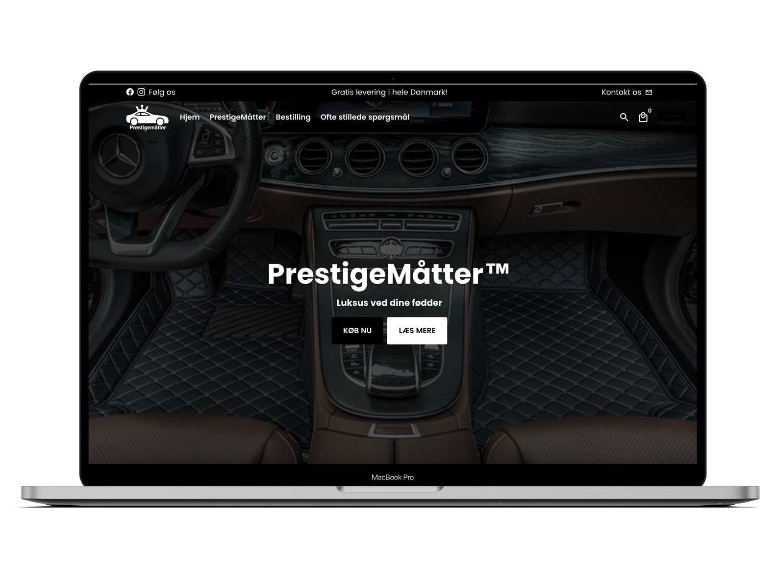 Prestigemåtter er en dansk dropshipping webshop, der sælger skræddersyede bilmåtter til personbiler. Vi har været med til at brande produktet og har derfor en del social proof. Vi har udelukkende brugt Facebook Ads samt Google Ads/SEO til promovering. Vi har en del social proof på Facebook, hvor vi har opslag med over 1000 reaktioner samt kommentarer. Der er et gigantisk potentiale for ekspandering i Danmark samt til udlandet.