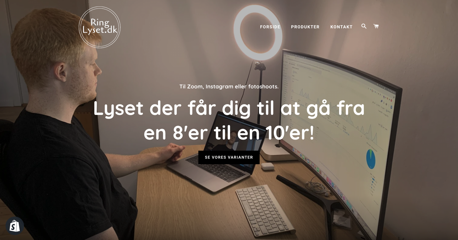 Ringlyset.dk er en webshop med de populære ring lys/ring lights. Webshoppen har en anderledes tilgang end konkurrenterne på markedet, da marketingsvinklen er tiltænkt at skulle henvende sig til, at produktet kan bruges til belysning til online møder, som de fleste nok ved, er kommet for at blive. Normalt bruges ring lys til at få ekstraordinær god belysning til selfies, og det har vi selvfølgelig også produkterne til. Der er i alt 6 forkskellige varianter af produktet, som alle har en god avance mellem 50-60%. Webshoppen er tiltænkt at bruge forretningsmodellen ''dropshipping'' og har en leverandør i Europa med 2-4 hverdages leveringstid. Dropshipping vil sige, at man sender produktet direkte fra leverandøren. Man er dermed ikke selv lagerførende og bærer minimal finansiel risiko. Hvis man hellere selv vil have lager, er der også god mulighed for at købe et lager hjem fra leverandøren. I forbindelse med et større indkøb af produktet, vil det også være muligt at få private-labeled produktet.