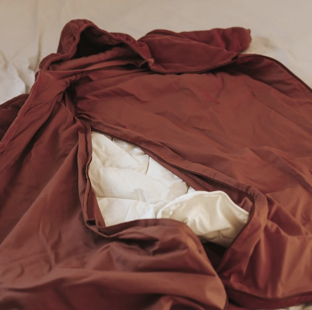 Alle betræk er produceret i GOTS-certificeret eller OEKO-TEX 100 bomuld, og soveposen fås med naturligt uldfyld eller dunfyld med 90 procent gåsedun.