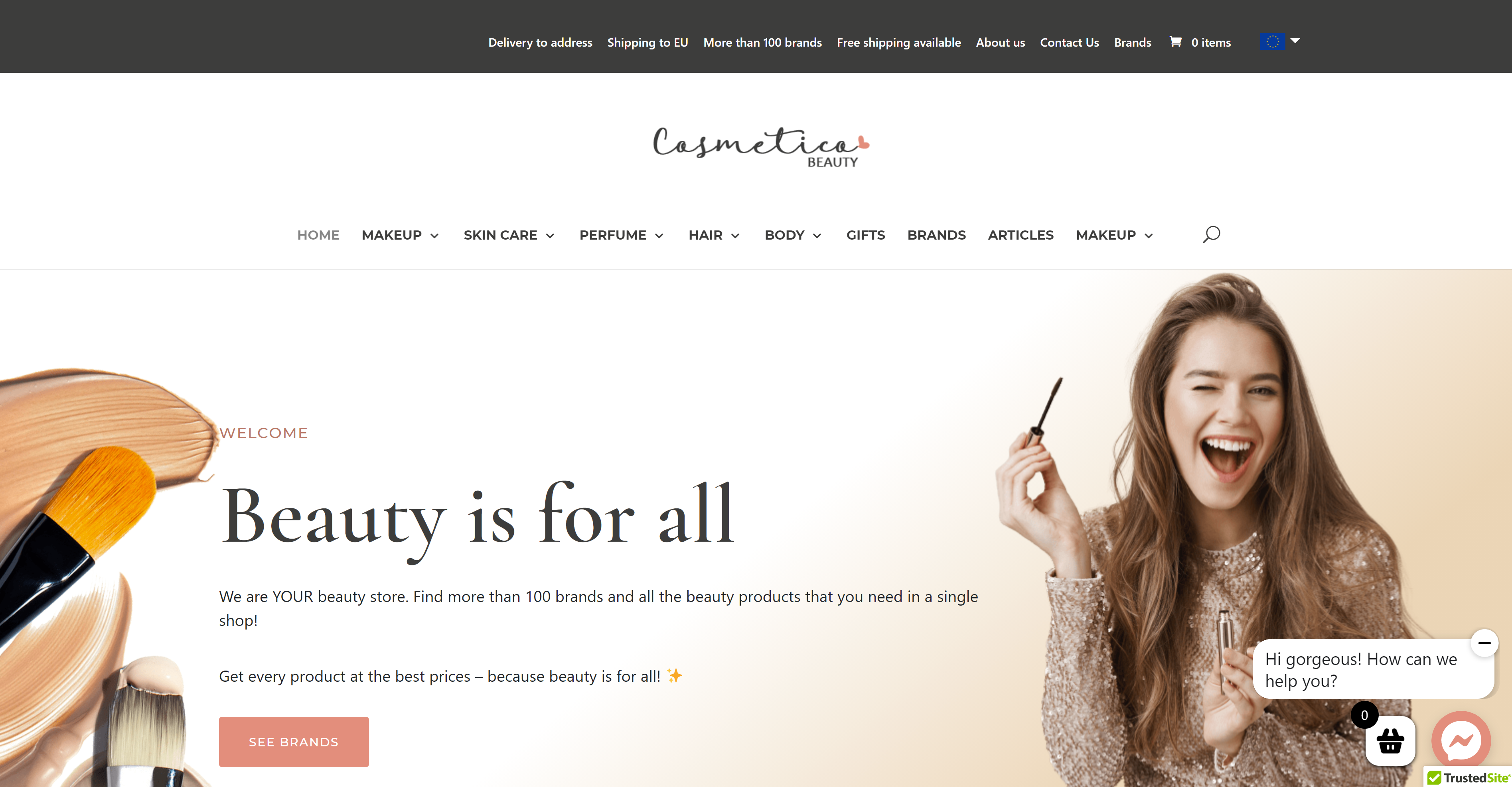 Shoppen er bygget i WooCommerce og fungerer upåklageligt. Hele systemet er opsat med en stor leverandør i EU, som kan sende over 17.000 forskellige varer fra over 600 forskellige brands - næsten udelukkende kendte brands som Clinique, Esteé Lauder og alle andre beautybrands du kan komme i tanke om.