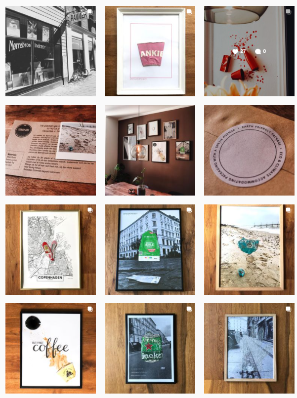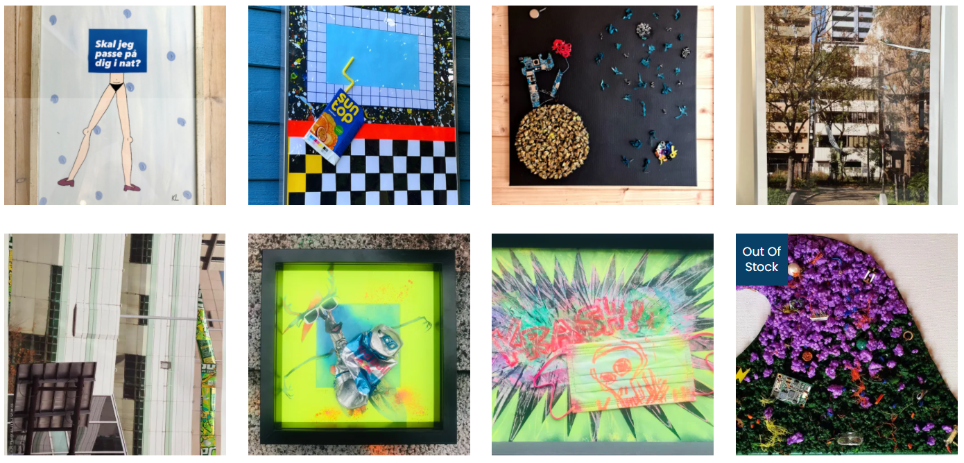 Kunst af affald som bliver lavet af eksterne kunstnere som bliver solgt på Instagram, Webshop mm. af både B2C og B2B