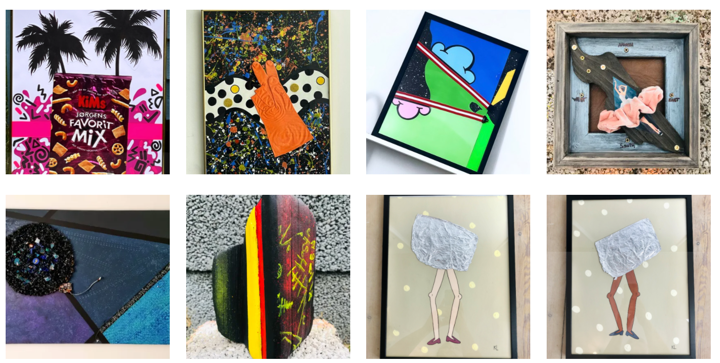 Kunstværkerne kan være alt lige fra skulpturer til collager, samt malerier og alt hvad man kan finde på.