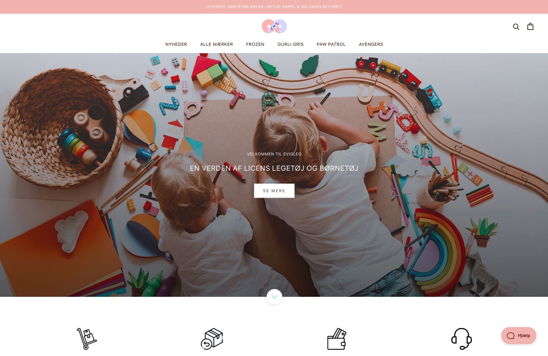 Webshoppen sælger kvalitets børnelegetøj, tøj og accessories fra førende licens mærker: Paw Patrol, Gurli Gris, Disney Frost, Avengers, Spiderman, Barbie, Baby Shark, Batman, Pyjamas Heltene + flere.