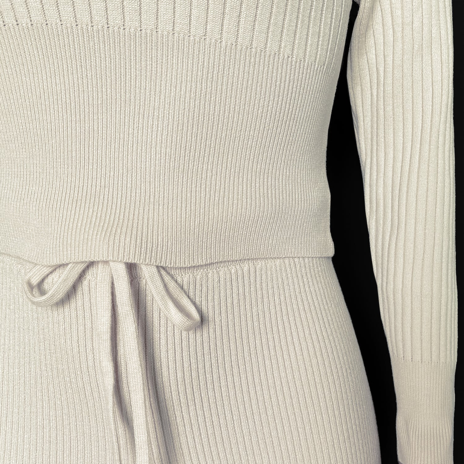 Produktet er et 2 dels tracksuit. Som er lavet af 95% bomuld og 5% spandex. Det er strikket, deraf vores navn. Samtidig med et 2 dels dress og et one-size ''kjole''