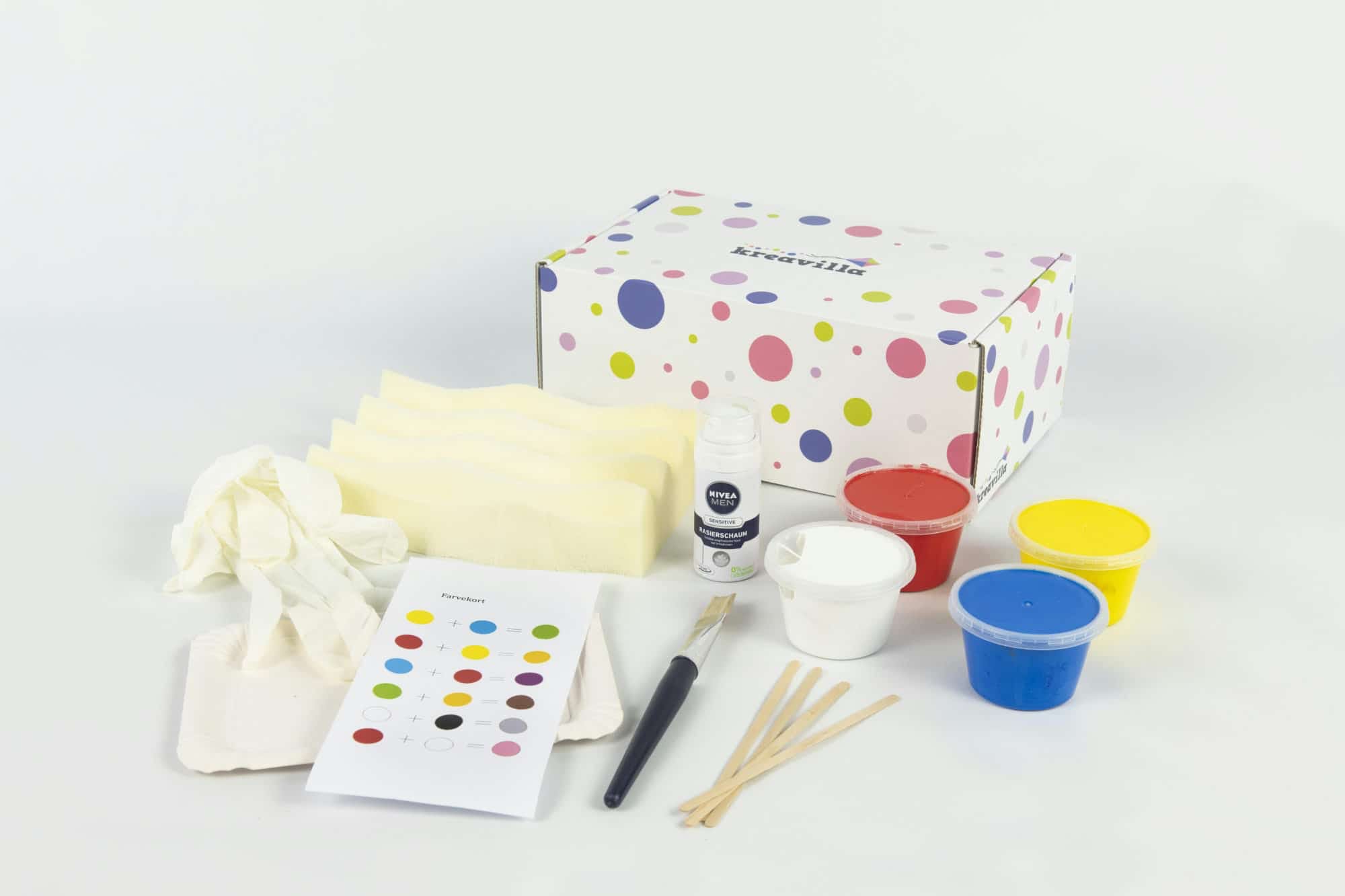 Hver kasse er et projekt barnet lige kan kaste sig over. F.eks lav din egen sæbe. Alt følger med i kassen som alle er pakket i Danmark.