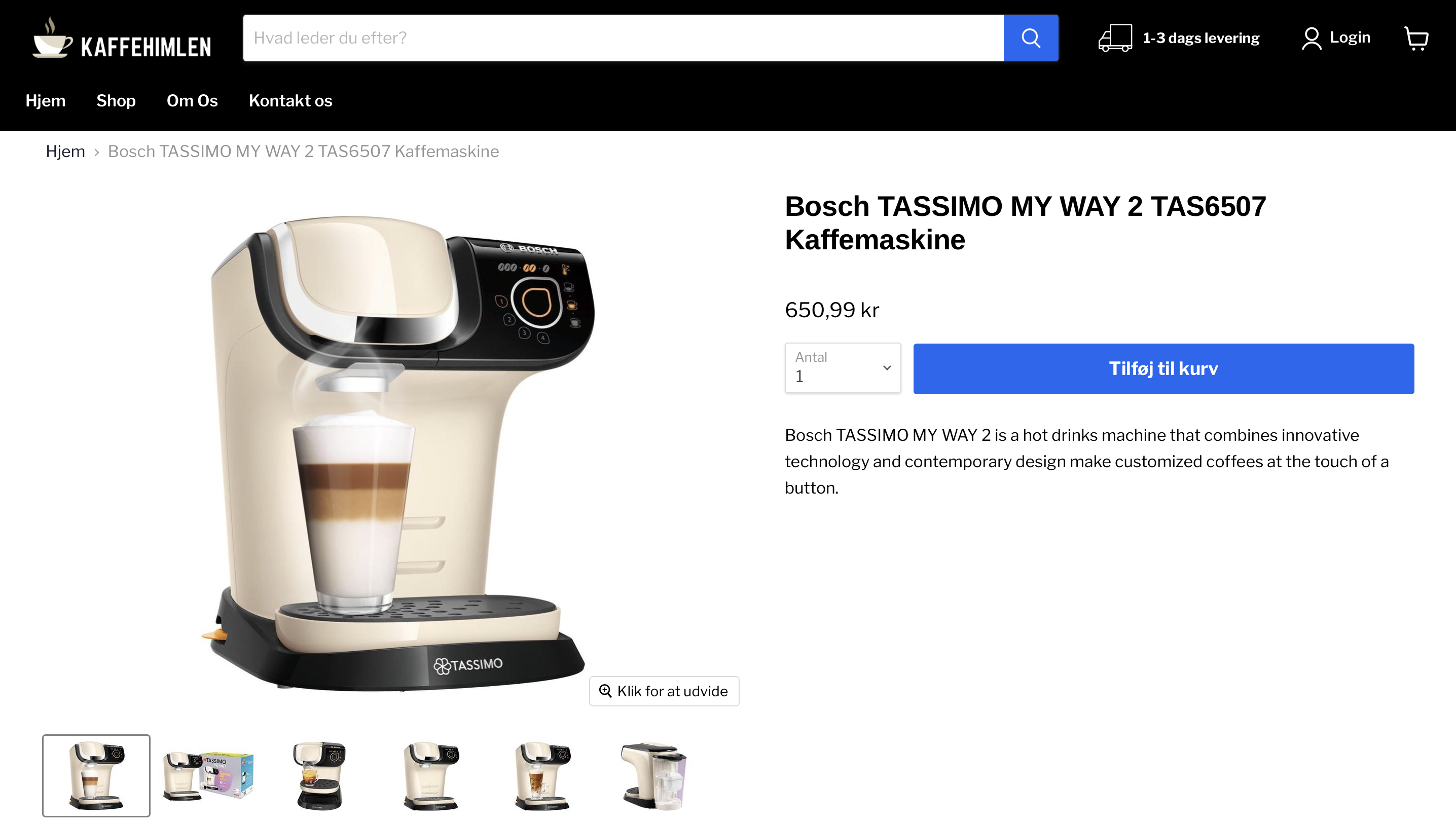 Dropshipping af kaffeprodukter, med dansk leverandør