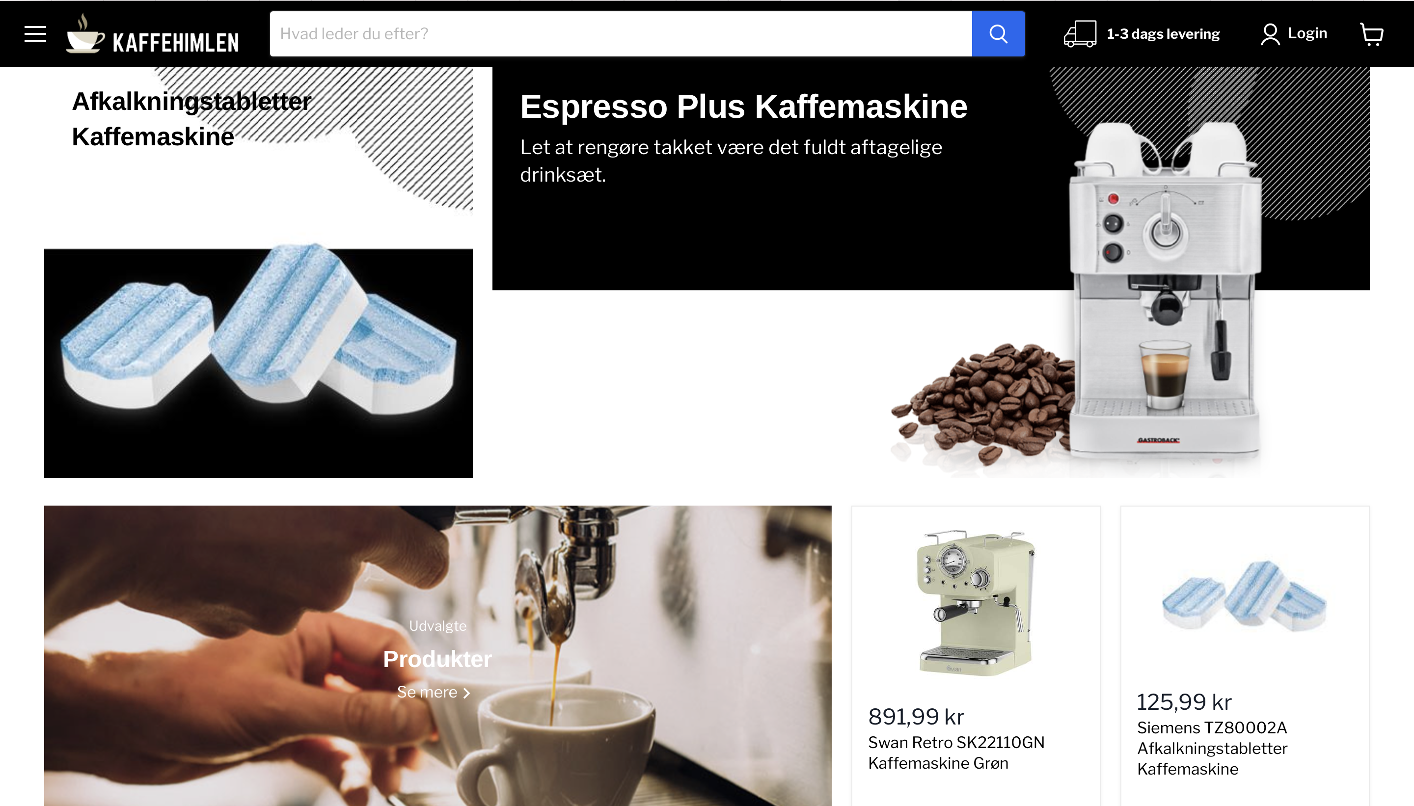 Kaffehimlen er din unikke Webshop med salg af alle brugbare og kvalitetsbevidste kaffeprodukter. Alt lige fra de nyeste kaffemaskiner til de gamle klassikere samlet i en Webshop. Hos kaffehimlen, tror vi på, at alle skal have lov til at kunne købe de bedste kaffemaskiner til en overkommelig pris og af høj kvalitet. Derfor har vi samlet det hele et sted.