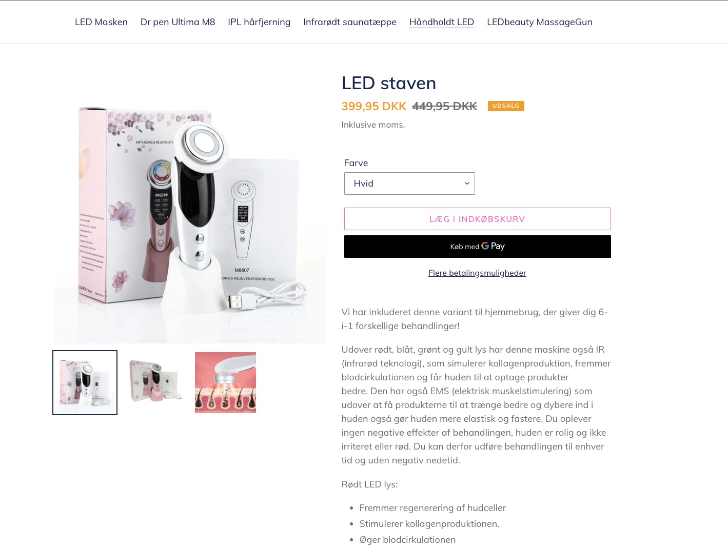 Webshoppen er sat op med en gruppe varer som allesammen henvender sig til Beauty og herunder specielt lysterapi.