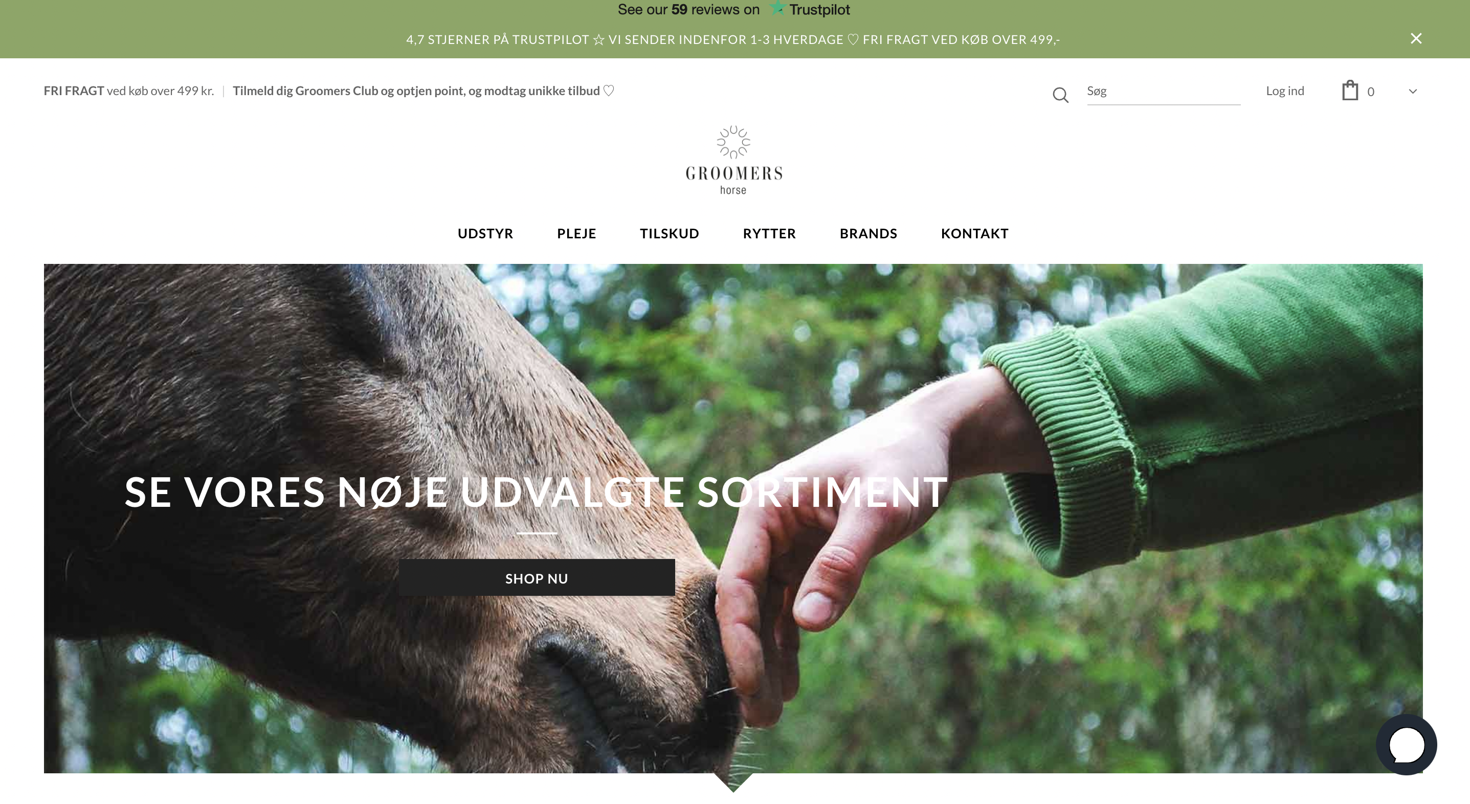 Groomers.horse er bygget op i Shopify, så det også er nemt for den uerfarne webshopejer at kommer hurtigt i gang.