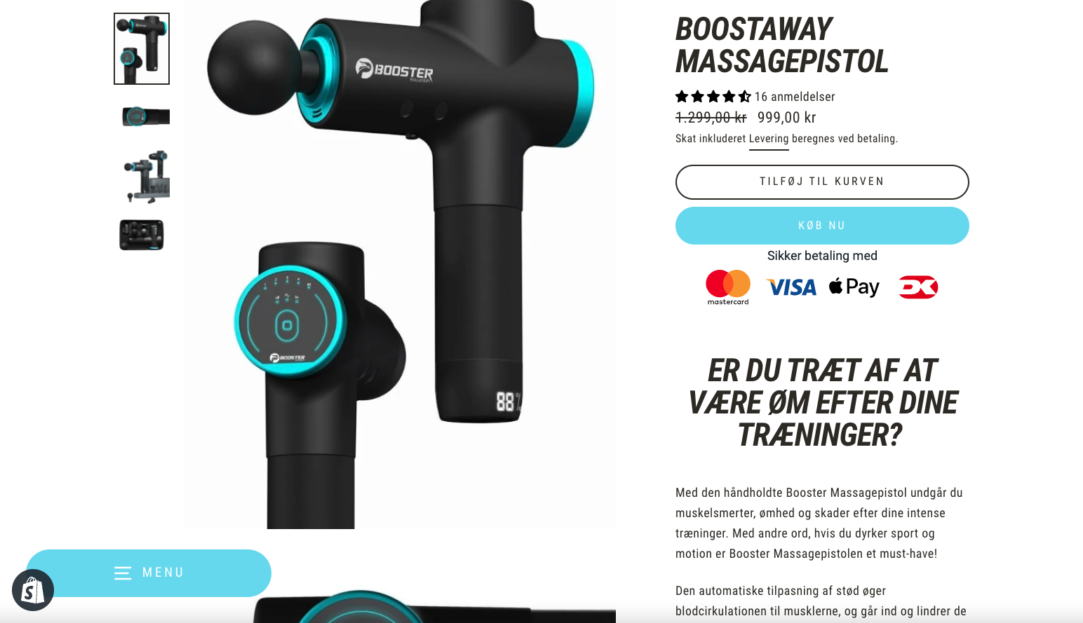 Boostaway.dk er en webshop, der sælger den populære massagepistol. Webshoppen er sat op til at blive kørt med dropshipping (da jeg selv havde tænkt mig at gøre det), men der er også gode muligheder for at købe et lager hjem af leverandøren. Dropshipping vil sige, at man sender sit produkt direkte fra leverandøren til kunden. Man er dermed ikke selv lagerførende og bærer minimal finansiel risiko. Hvis man hellere selv vil have lager, er der også god mulighed for at købe et lager hjem fra leverandøren. I forbindelse med et større indkøb af produktet, vil det også være muligt at få branded produktet.