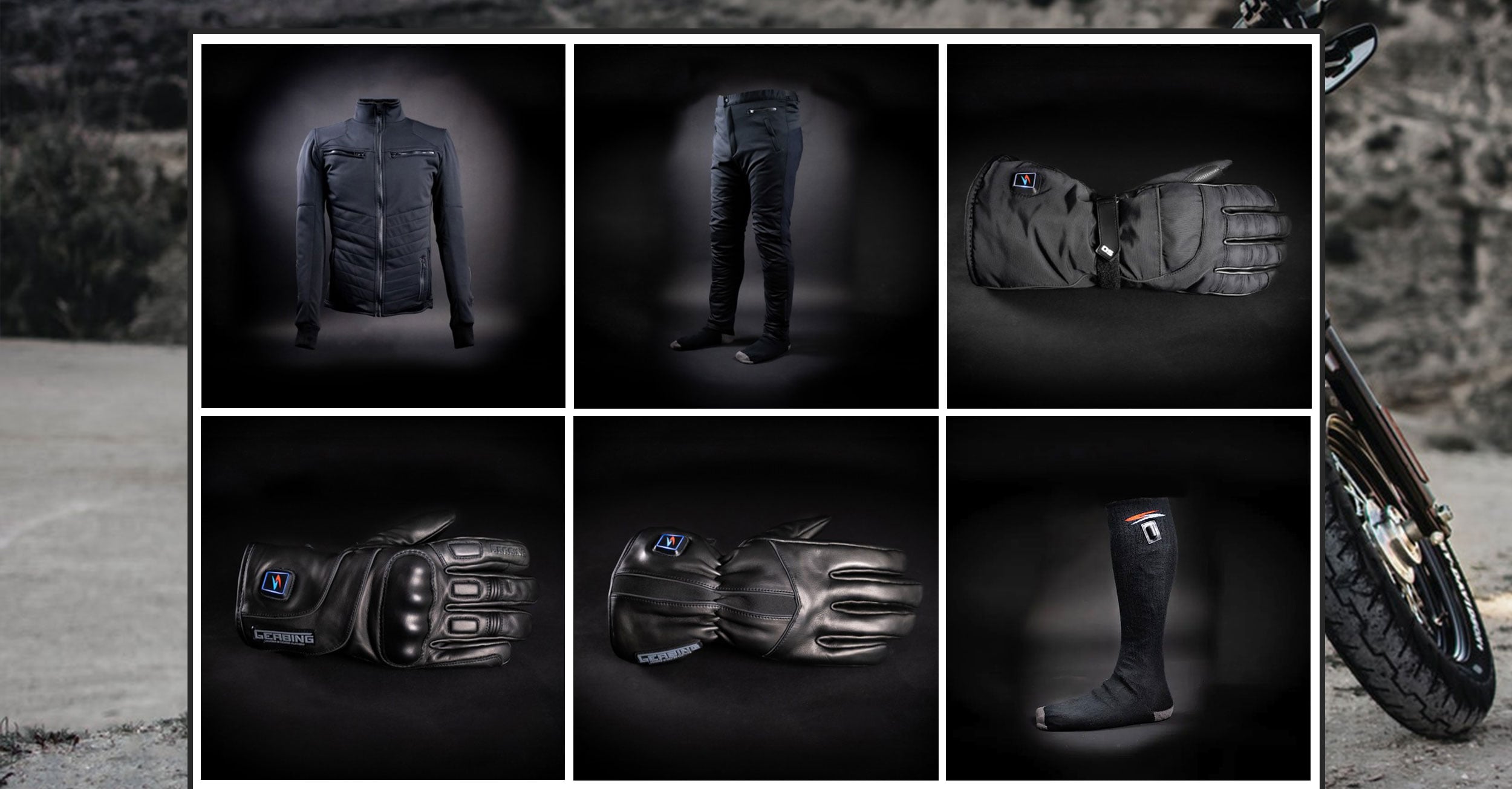 Produkterne er helt klart Gerbings stærke side. Produkterne opvarmes ved hjælp af de patenterede Microwire, som i modsætning til opvarmning med kultråde, ikke kan knække når tøjet foldes sammen.