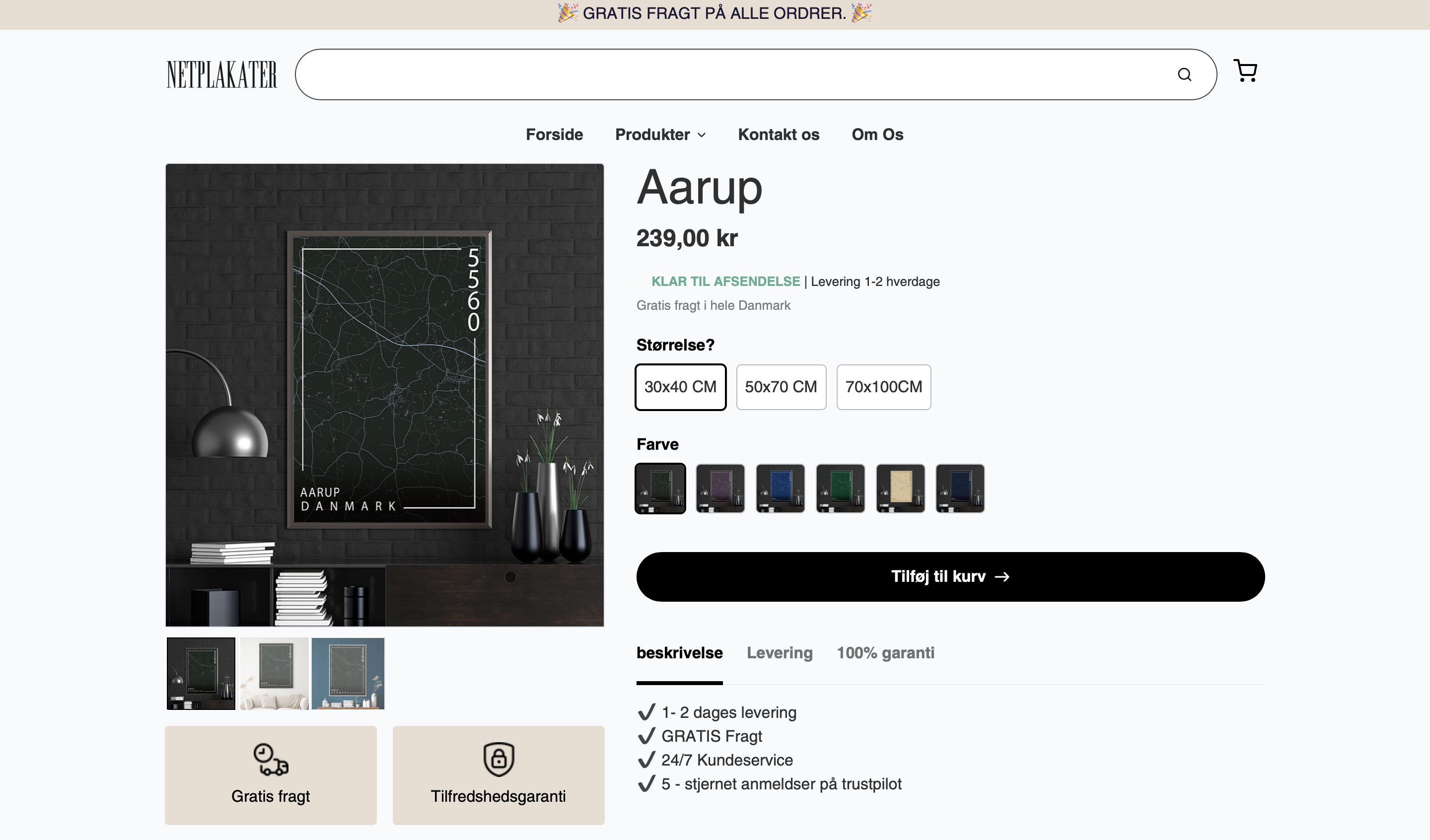 Der ikke noget kedeligere end en tom væg! Netplakater har et kæmpe potentiale, med personlig plakater opkaldt efter byer i Danmark! Vi har alt fra Årslev til Frederiksbjerg. Plakaterne er super stilrene, og kommer i forskellige kontrast farver, så kunderne finder den stil der passer dem. Her har du har en høj margin, og det er en dansk leverandør som står for afsendelse af plakaterne. Alt er automatiseret, det eneste du kommer til at stå for er at få salg. Her kan du markedsføre på diverse lokale Facebook grupper, som man tidligere har set nogle af de største på markedet gøre.