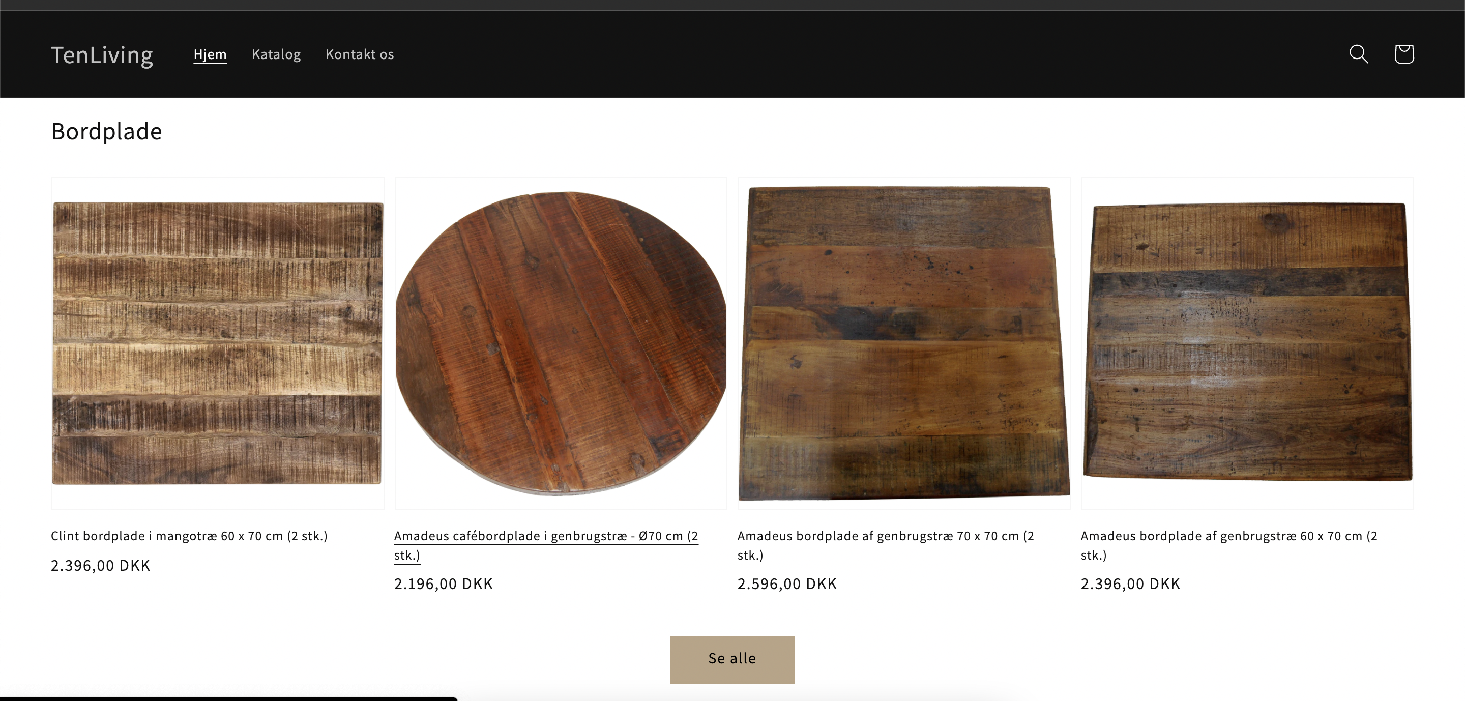 På shoppen sælges kategorier som: bordeplader, borde, barstole mm