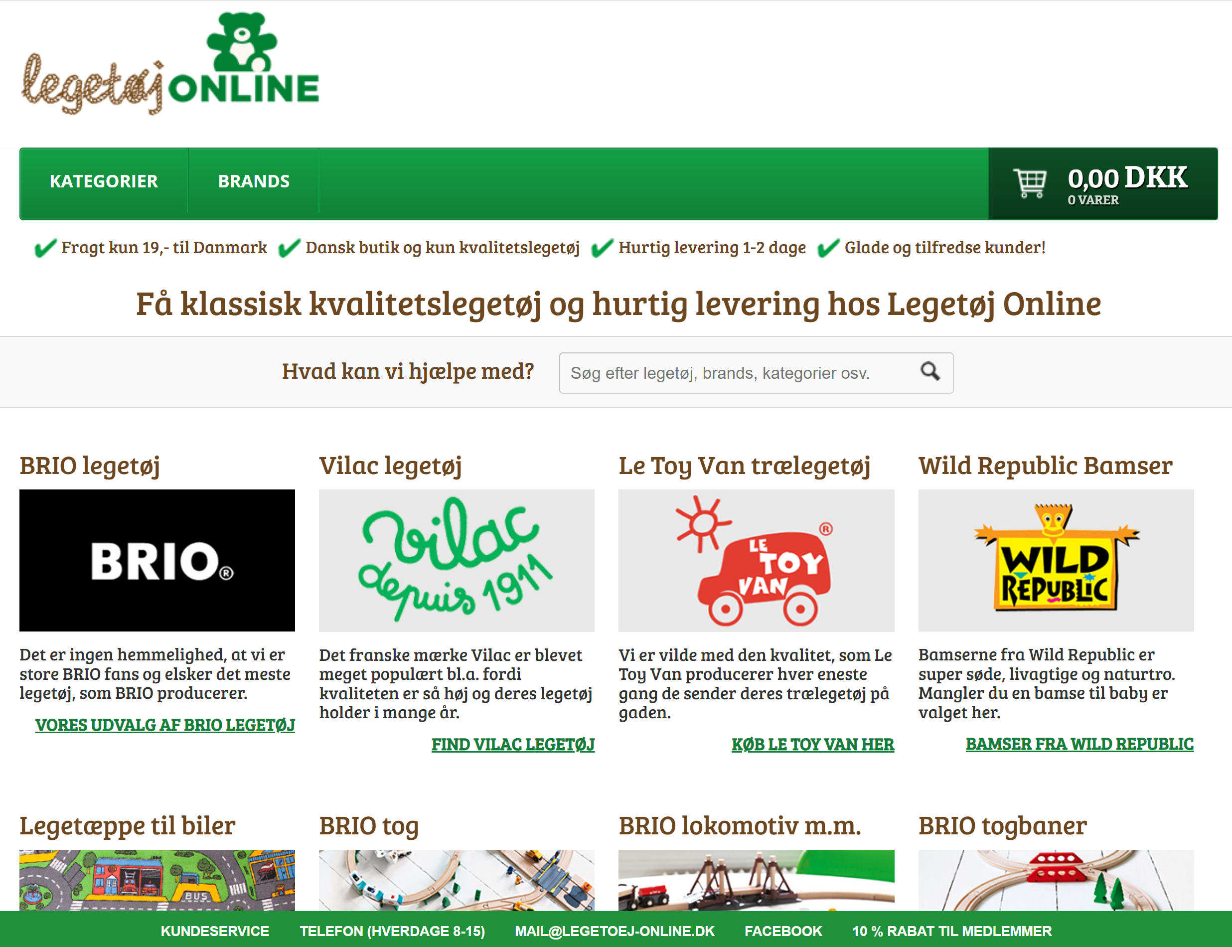 Komplet, fuld funktionsdygtig og aktiv webshop med salg af legetøj med 10 års historik sælges. Webshoppen er opbygget i Wordpress og Woocommerce og er nem at vedligeholde. Der er ca. 250 produkter oprettet og 42 forskellige produkter på lager pt. Salgsværdien af varelageret er ca. 20.000 kr. Produkterne på lager er en del BRIO, Le Toy Van og JaBaDaBaDo.