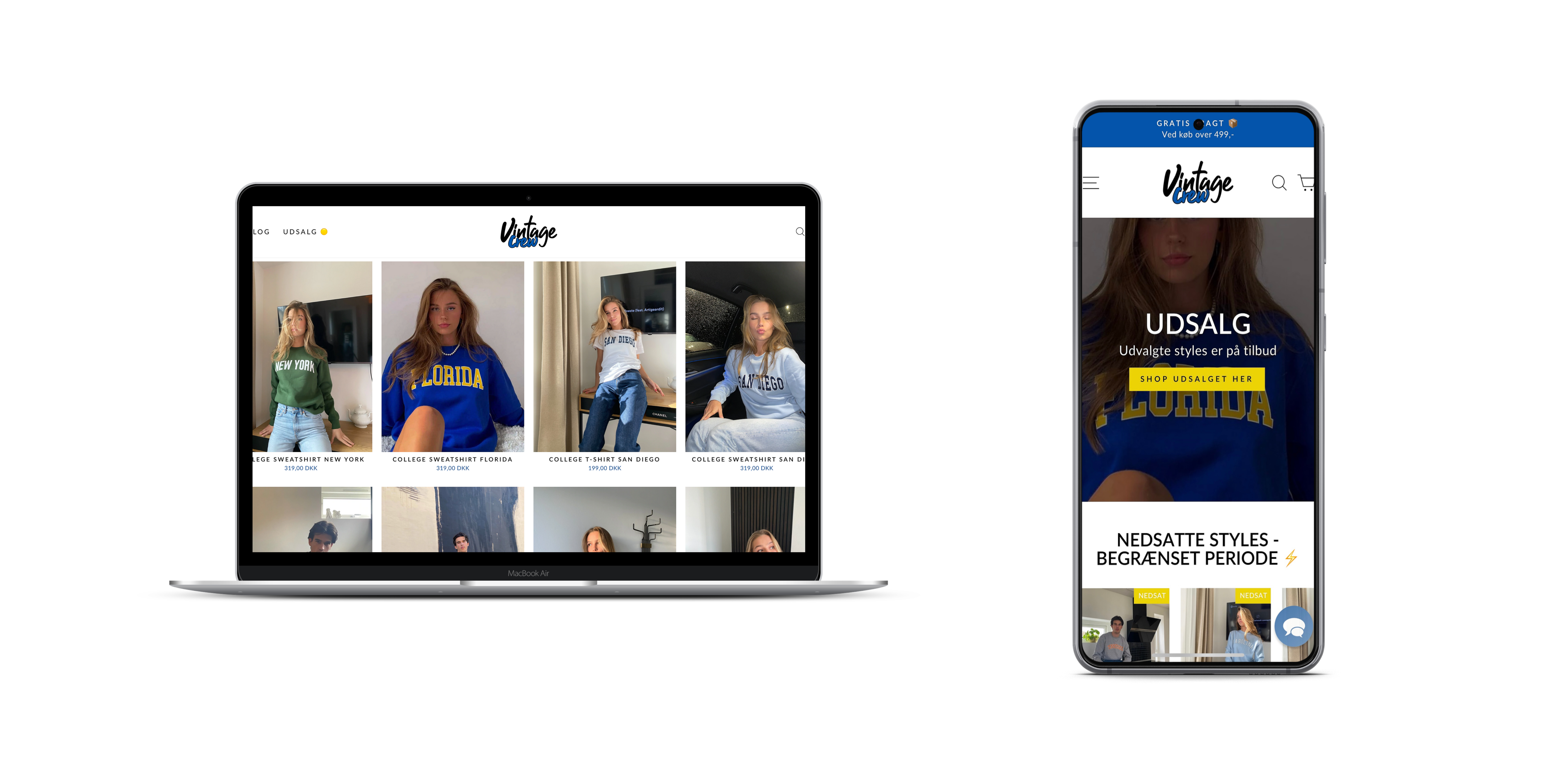 VintageCrew.dk har eksisteret i 3 år. Vi var blandt de første webshops i Danmark, til at importere og sælge genbrugstøj med college print. Nu har vi udviklet sortimentet og producerer nu også egne kollektioner.
