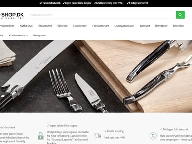 Danmarks største "Laguiole" bestik webshop sælges. Solidt overskud. Kræver kun 1-2 timer ugentligt. Alt omsætning er organisk (eksisteret siden 2012) og kræver ingen PPC.