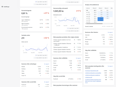 - Trafikken fordeler sig 65% organisk, 11,4% direkte og resten fra affiliates, social og email (ingen betalt annoncering)