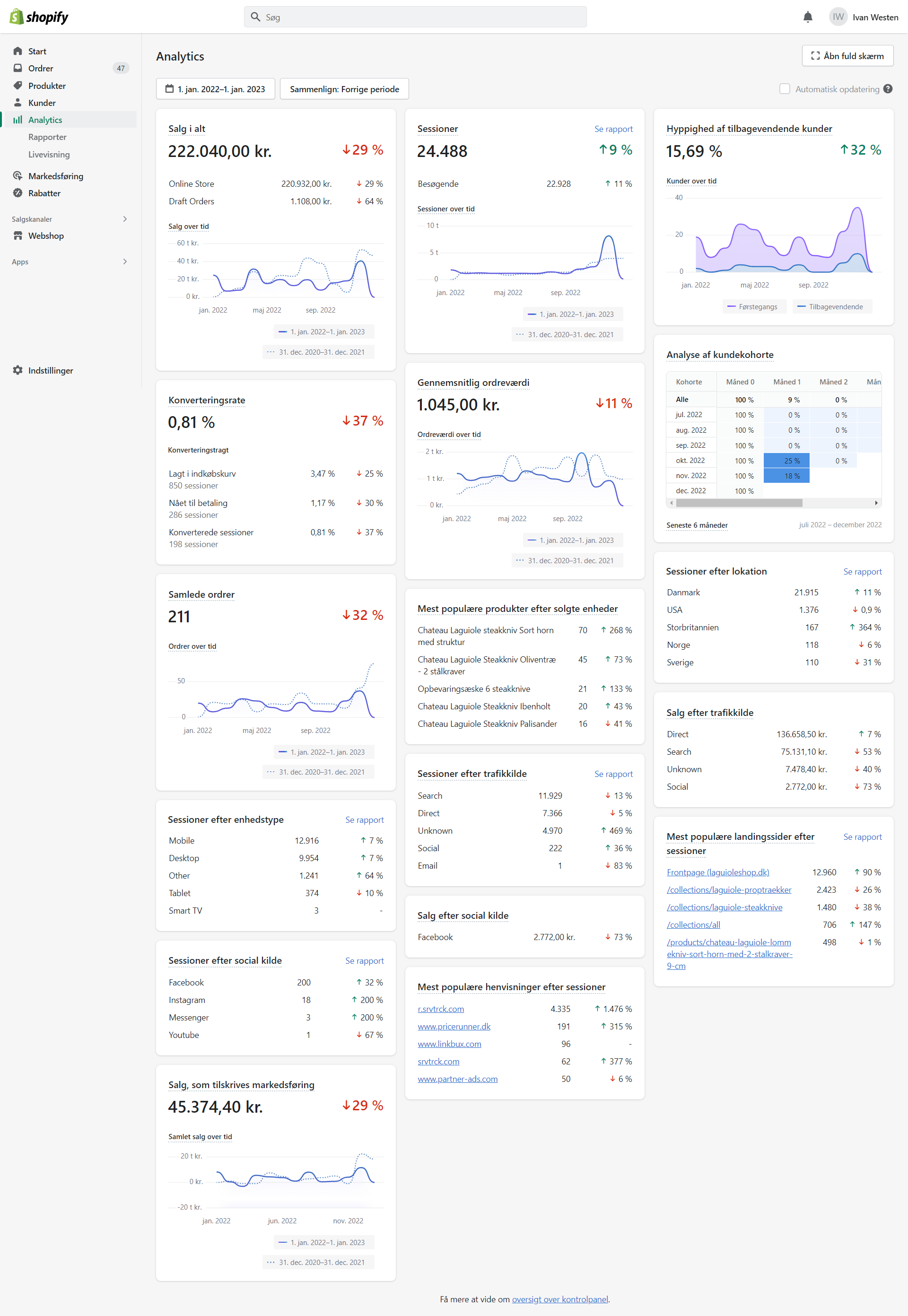 - Hostet på Shopify siden 2019 (nemt og overskueligt webshopsystem for begyndere)
