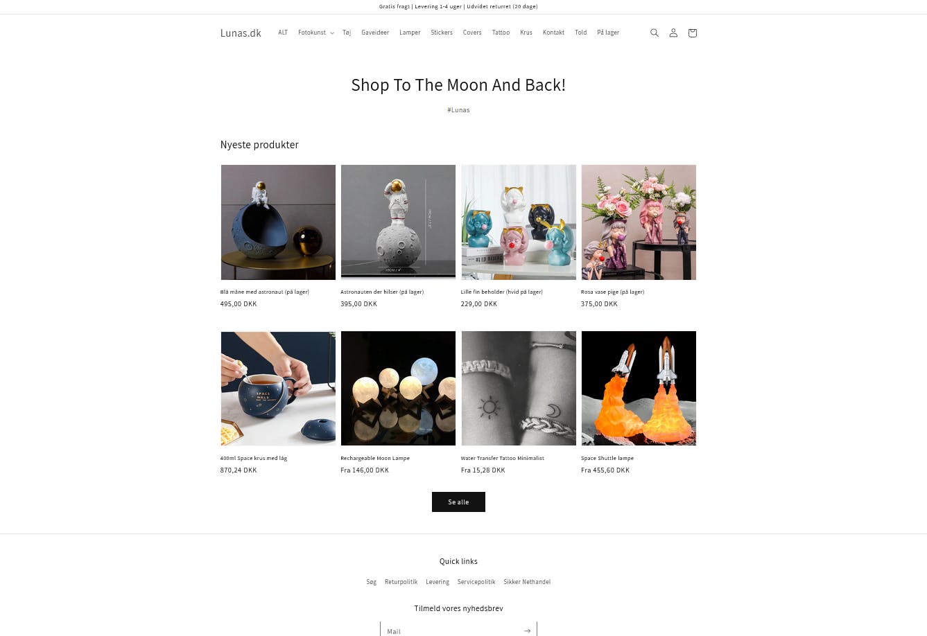 Har fulgt navnet Luna og derfor sat en masse måne og space tema produkter op, men det er nemt at ændre - og jeg lærer dig gerne hvordan.