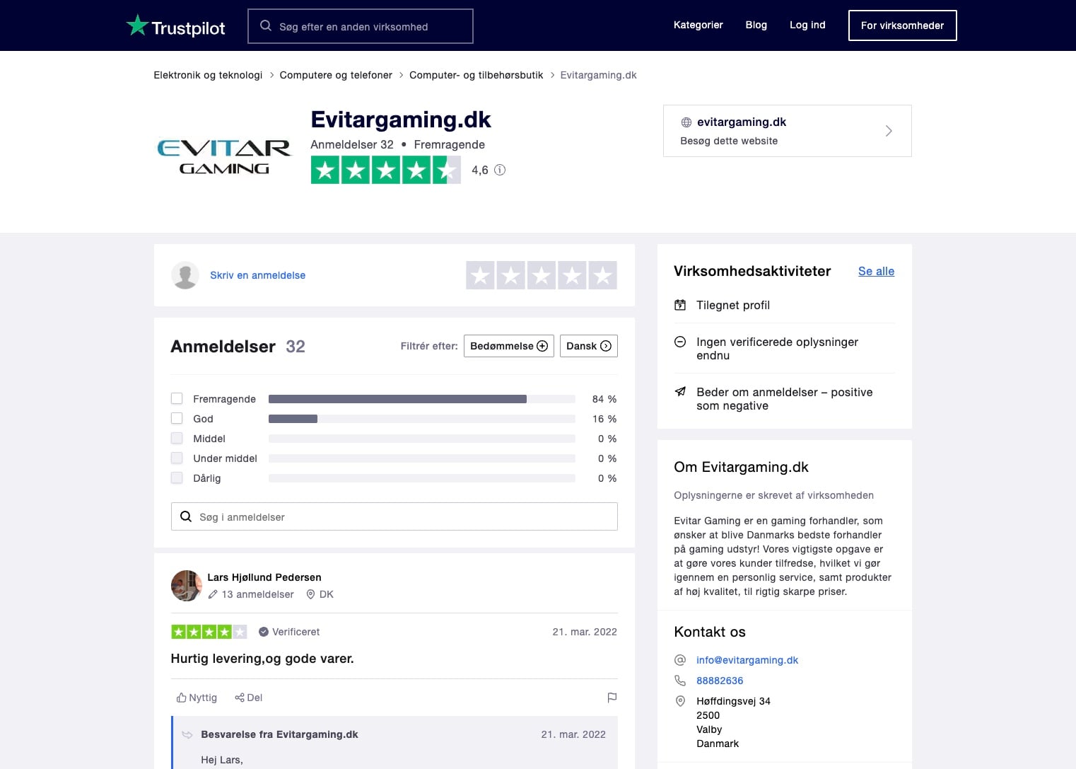 Trustpilot score på 4.6 på 32 anmeldelser.