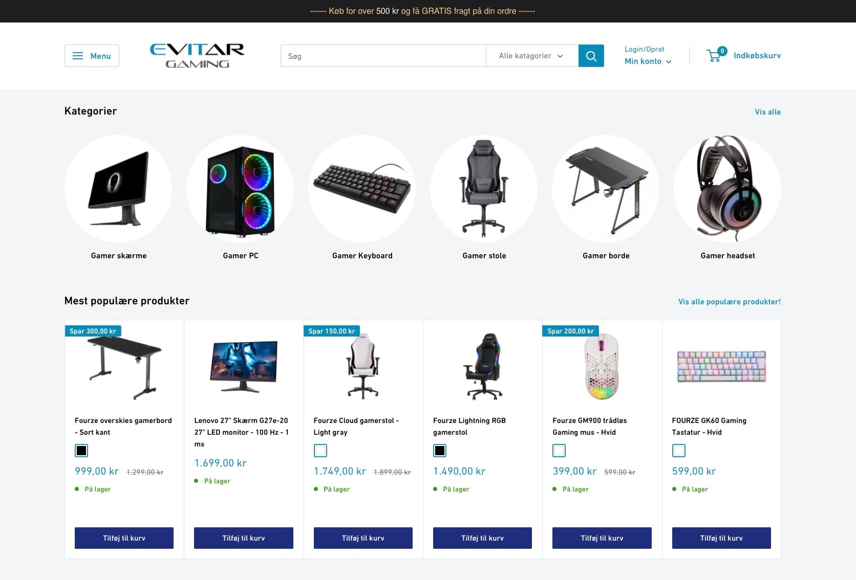 Vi startede EvitarGaming for ca. 8 måneder siden, med henblik på at blive en af danmarks bedste online webshop.