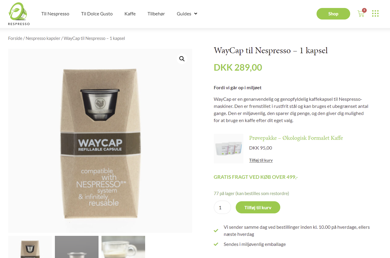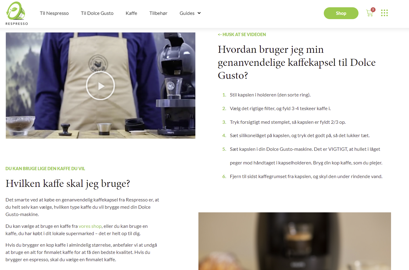- Leverandøraftale med Nord Roastery i Aarhus, som forhandler bæredygtig fairtrade-kaffe, der er malet specielt til Respressos kaffekapsler