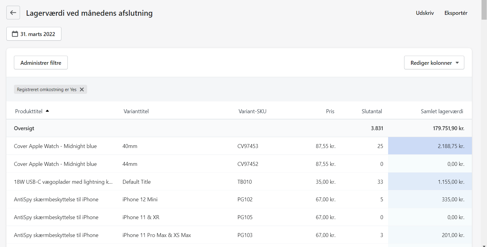 Varelagers værdi = ca. 685.000 (indkøbsværdi ca. 58.000kr)