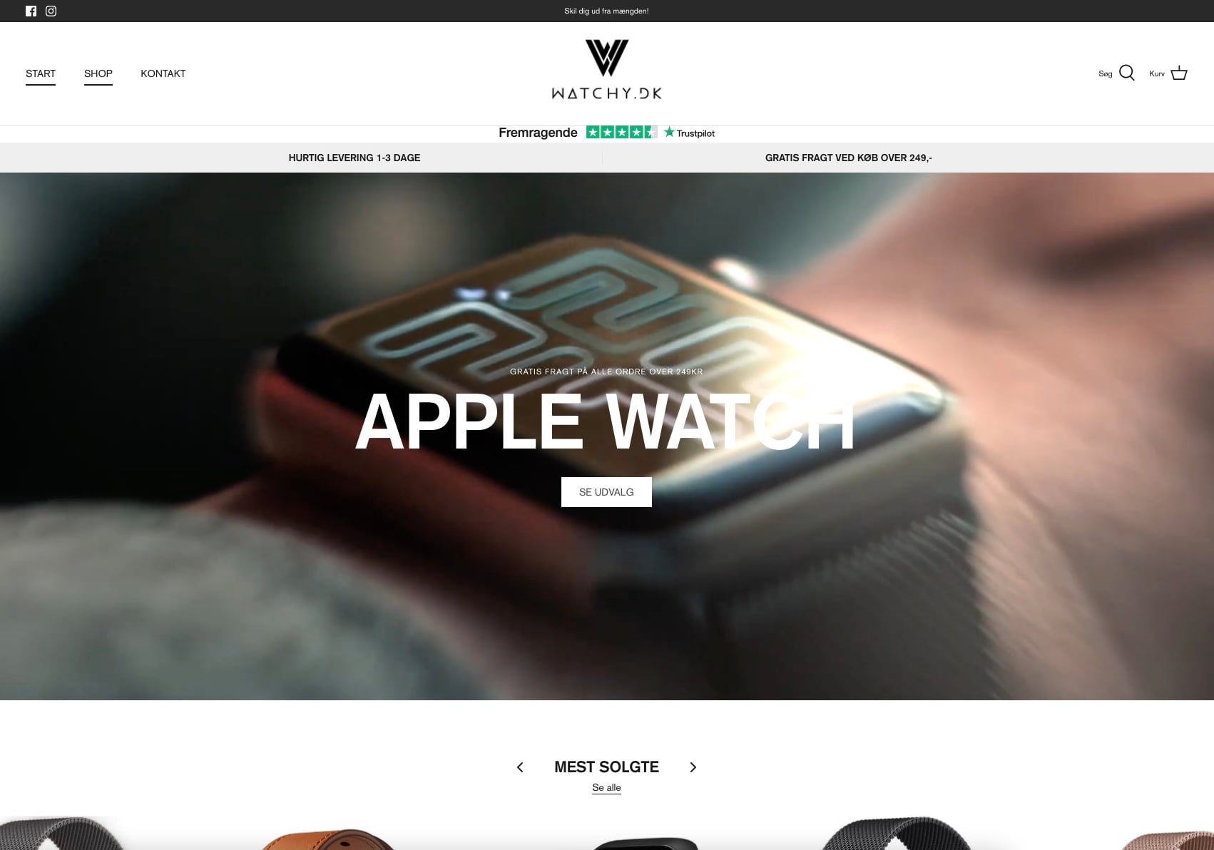Watchy.dk er bygget op i Shopify, så det også er nemt for den uerfarne webshopejer at kommer hurtigt i gang.