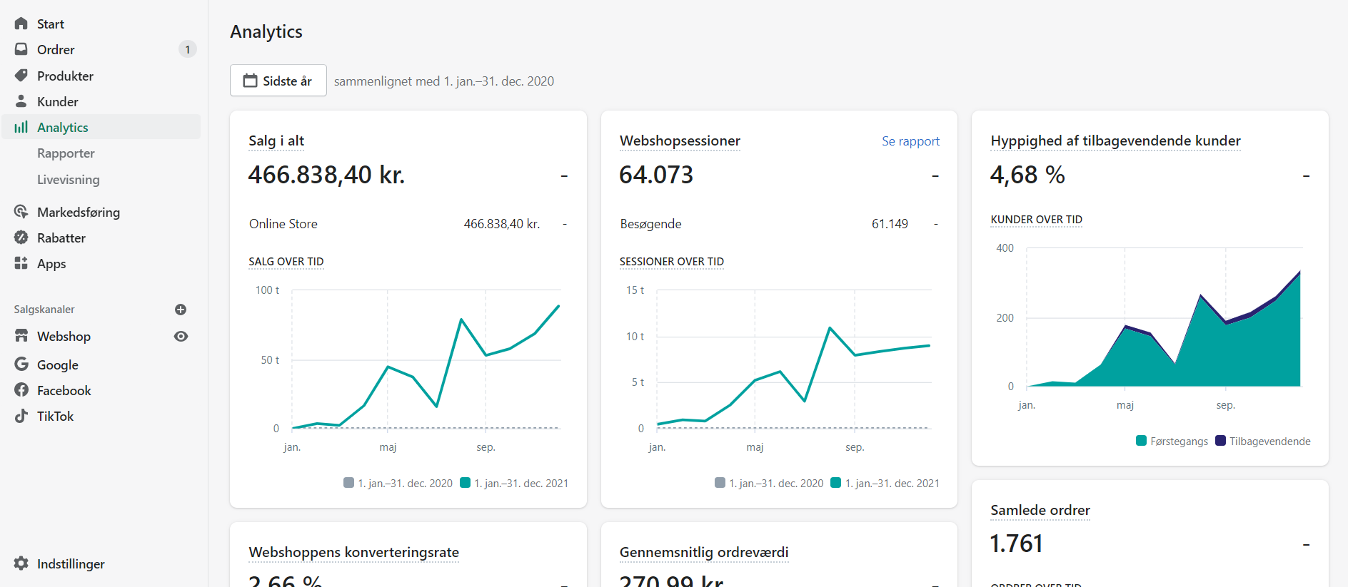Webshop med omsætning på 466.838 kr - varelager inkl. i prisen